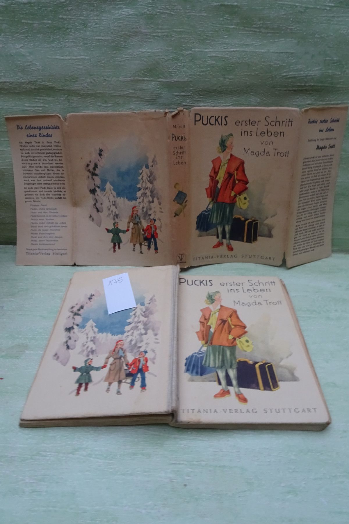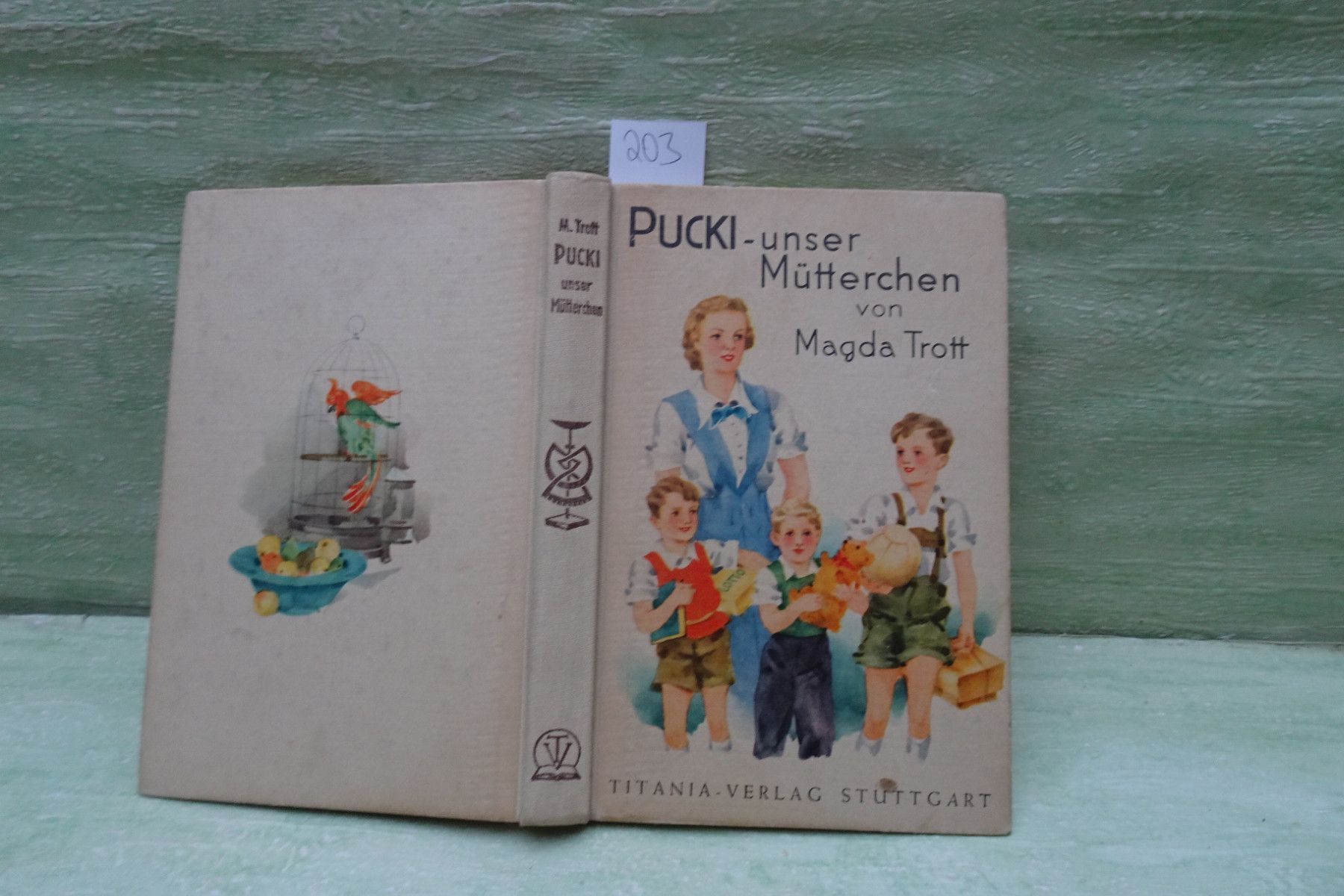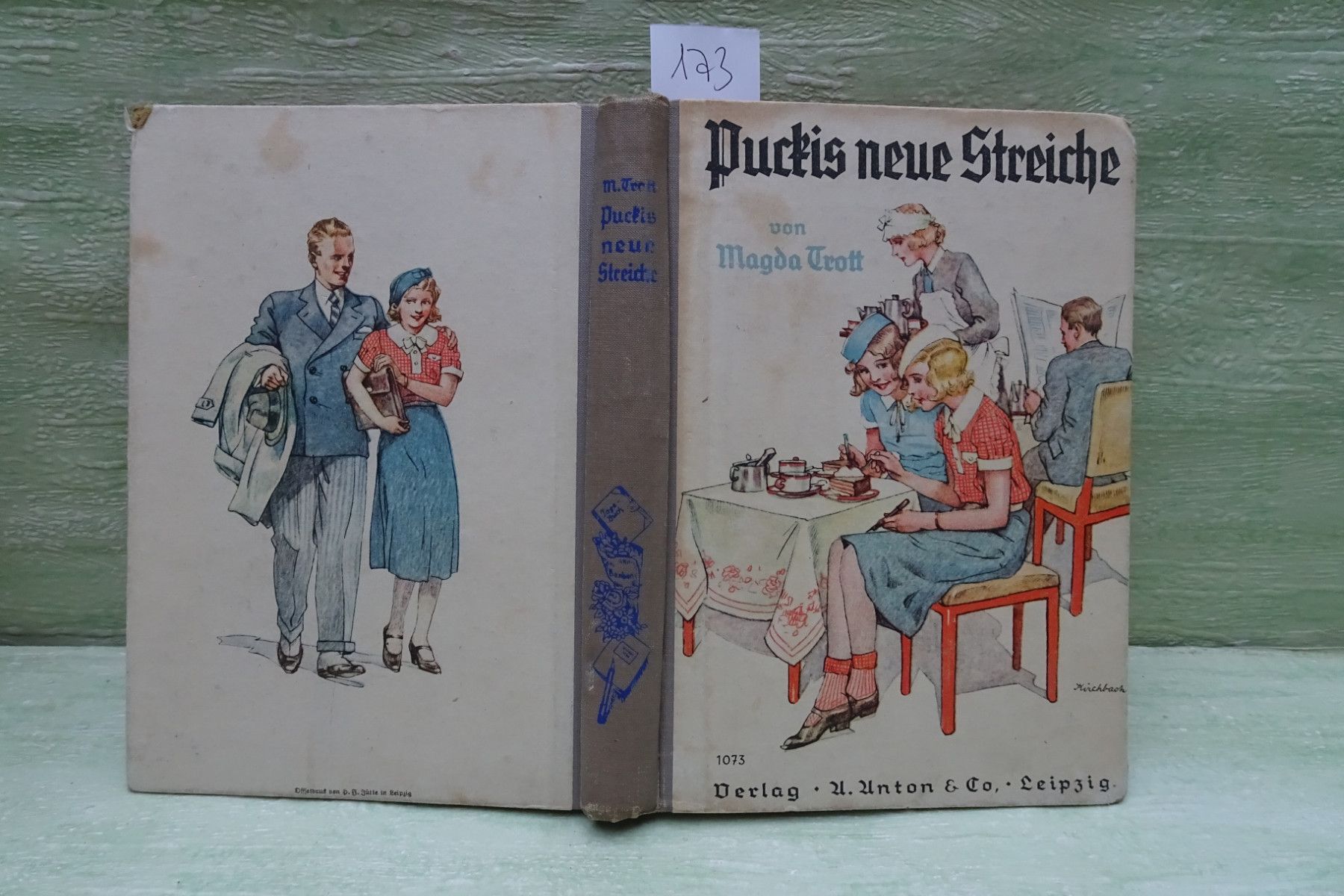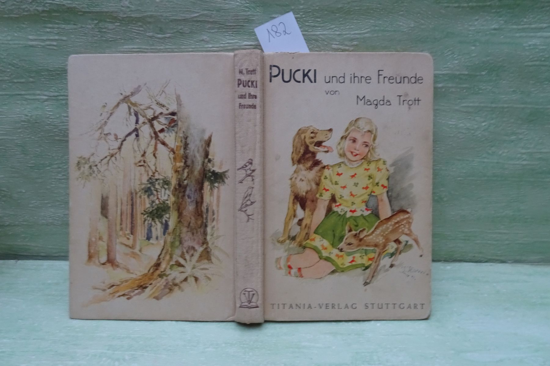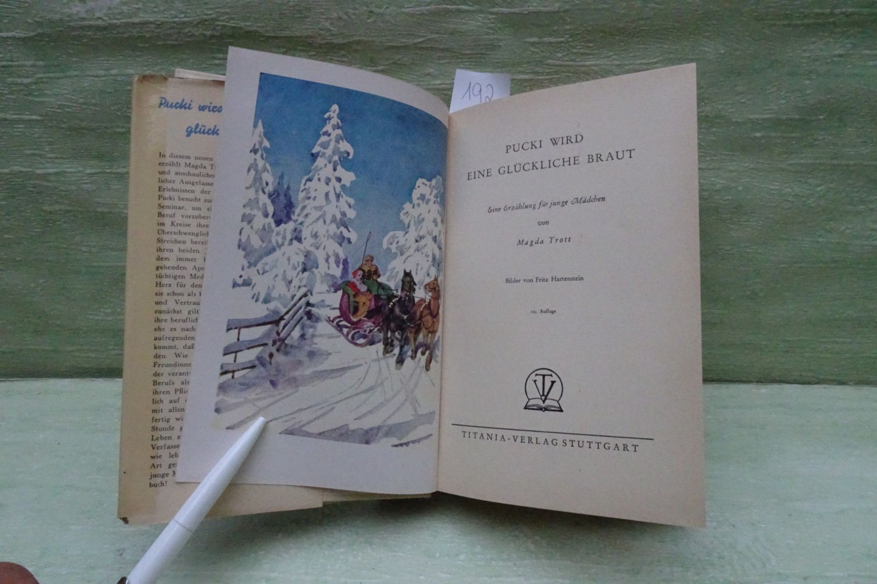 Jugend- & Kinderbücher ... Erinnerungen ..... Magda Trott Pucki -Auswahl- Titania Verlag Stuttgart . . alte Pucki Bände , alle mit Vollbild vorne . 172: Puckis neue Streiche Buchschmuck G Kirchbach Frakturschrift , 35.-44. Tausend , Fadenbindung Titania Verlag GmbH , Stuttgart Zustand : gut . 17