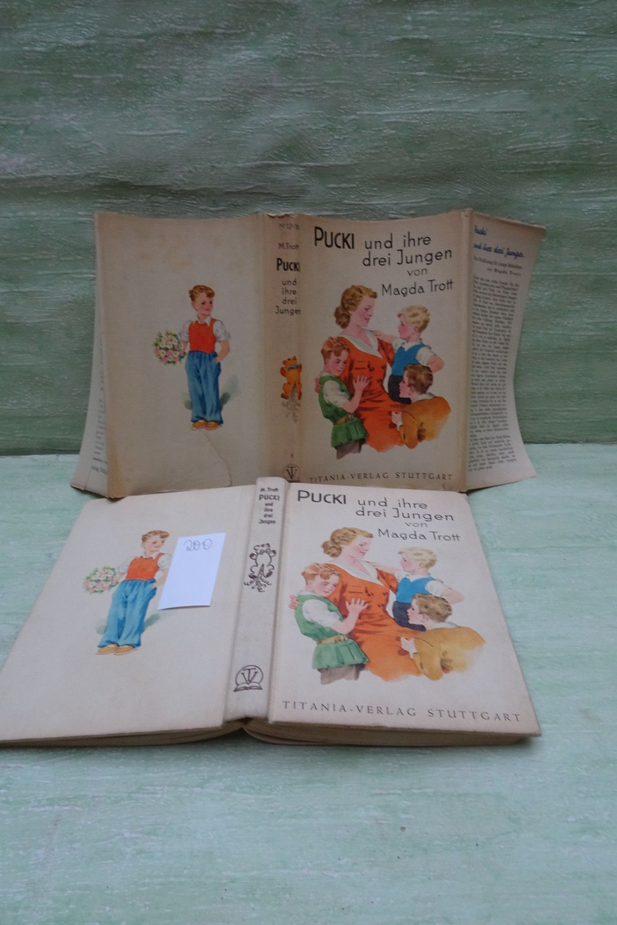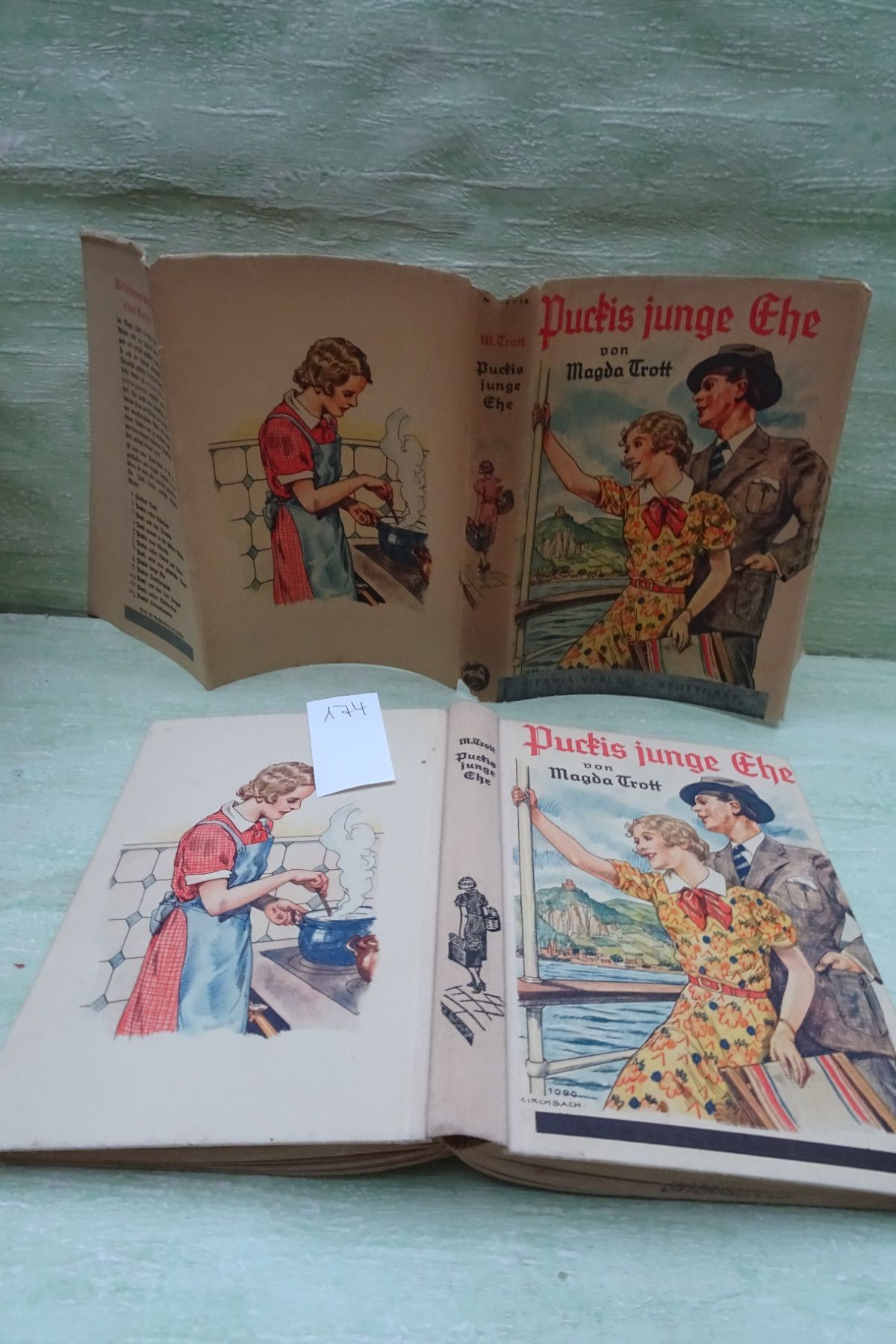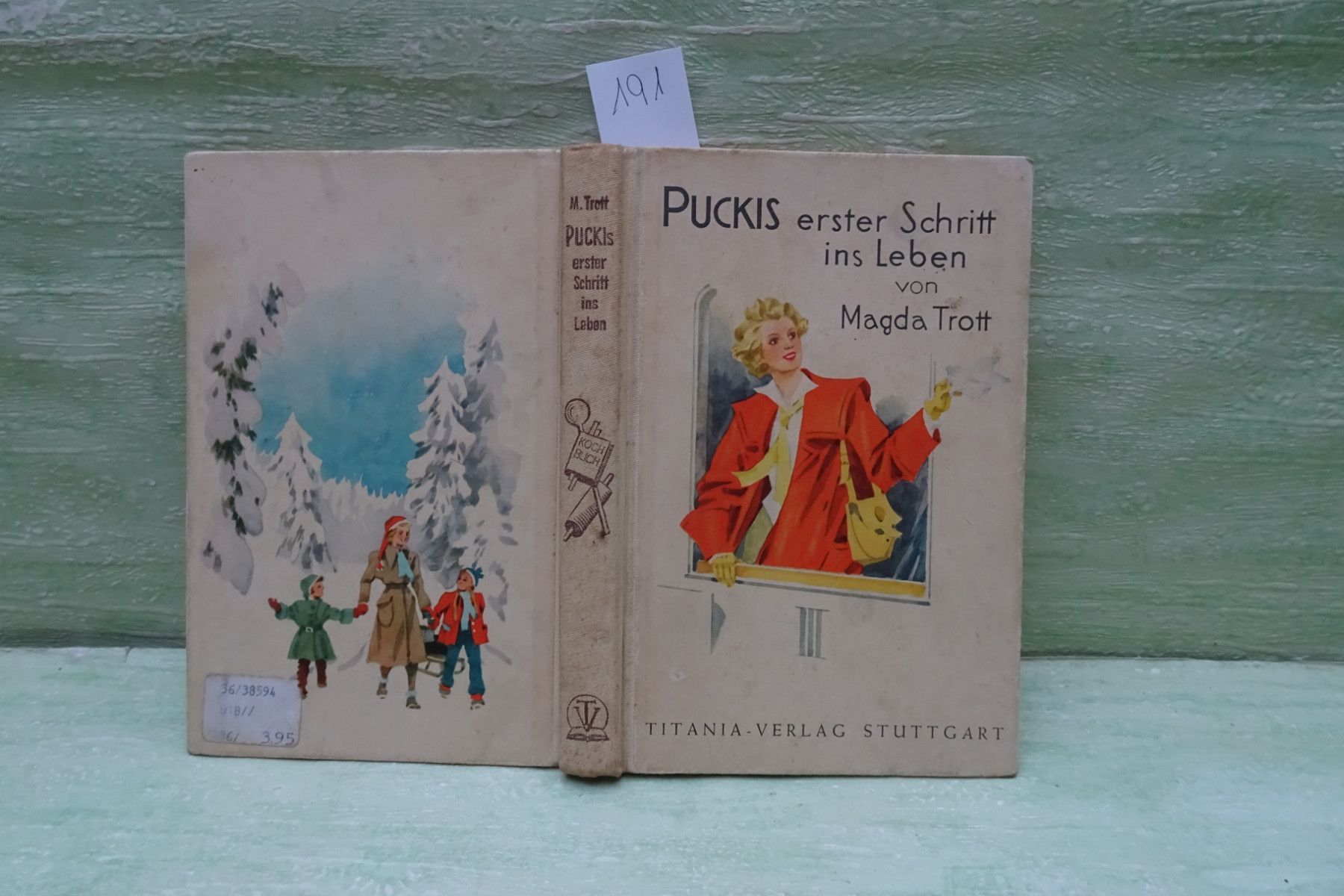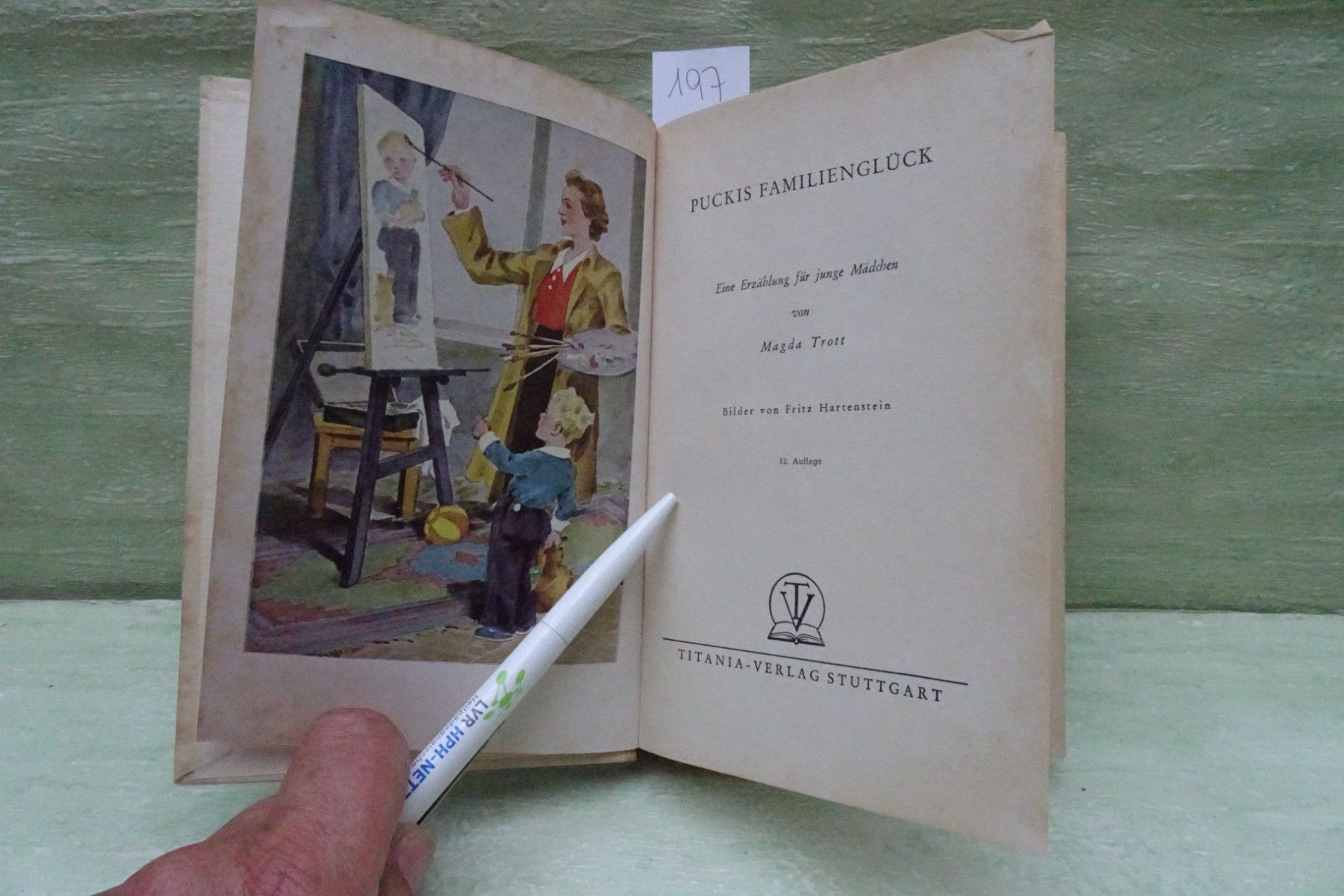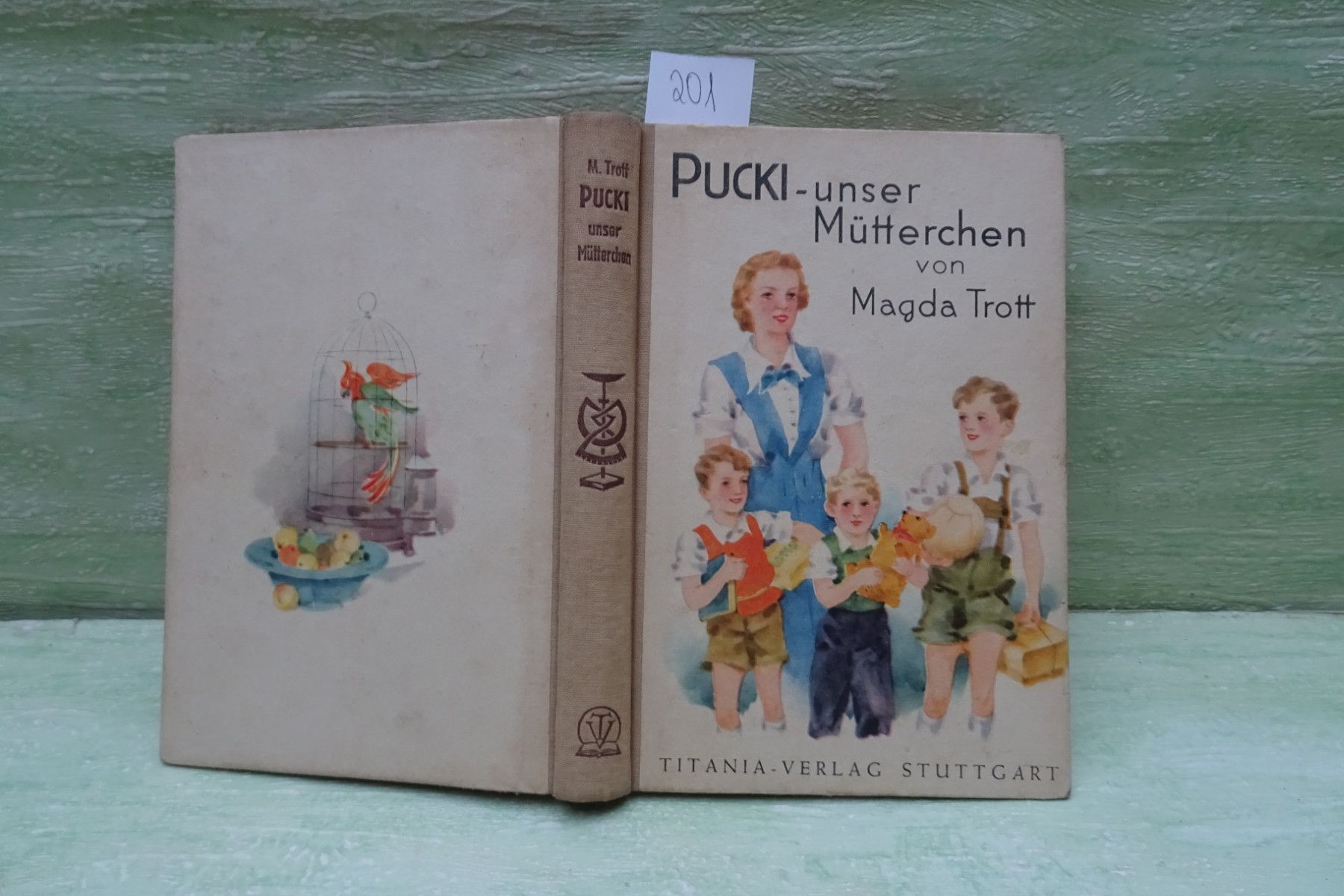 Jugend- & Kinderbücher ... Erinnerungen ..... Magda Trott Pucki -Auswahl- Titania Verlag Stuttgart . . alte Pucki Bände , alle mit Vollbild vorne . 172: Puckis neue Streiche Buchschmuck G Kirchbach Frakturschrift , 35.-44. Tausend , Fadenbindung Titania Verlag GmbH , Stuttgart Zustand : gut . 17