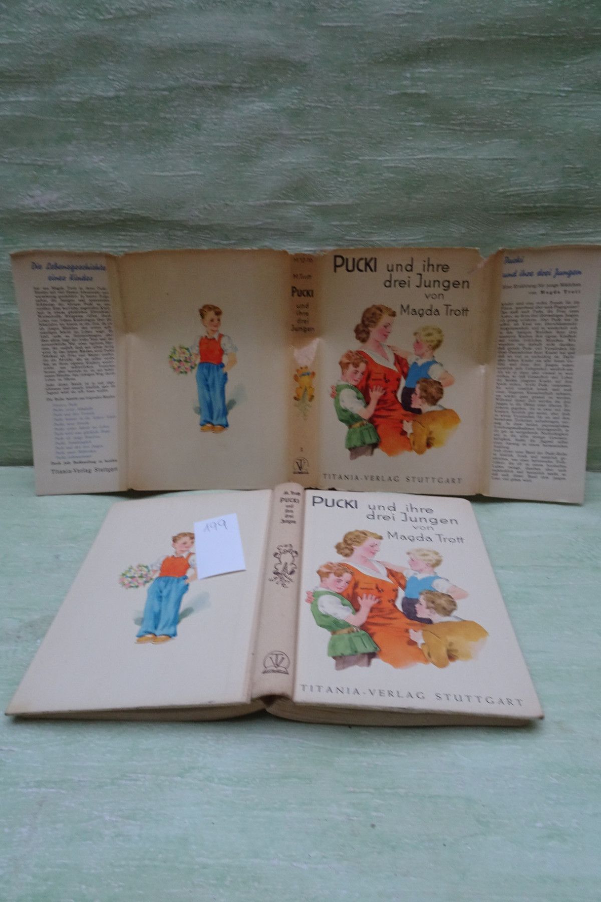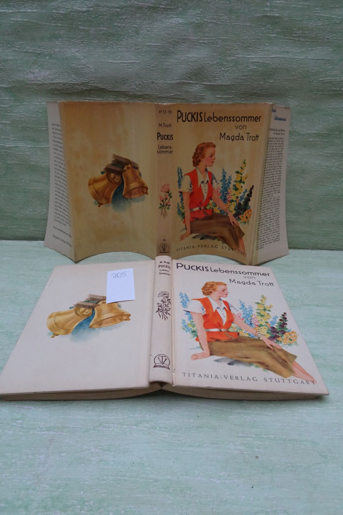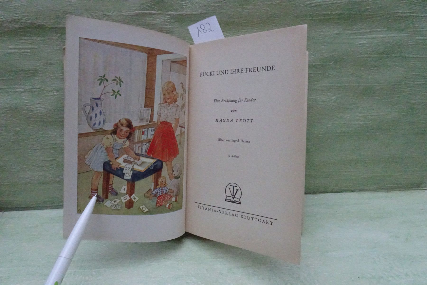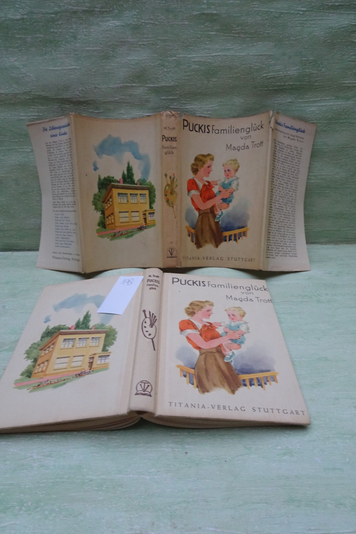 Jugend- & Kinderbücher ... Erinnerungen ..... Magda Trott Pucki -Auswahl- Titania Verlag Stuttgart . . alte Pucki Bände , alle mit Vollbild vorne . 172: Puckis neue Streiche Buchschmuck G Kirchbach Frakturschrift , 35.-44. Tausend , Fadenbindung Titania Verlag GmbH , Stuttgart Zustand : gut . 17
