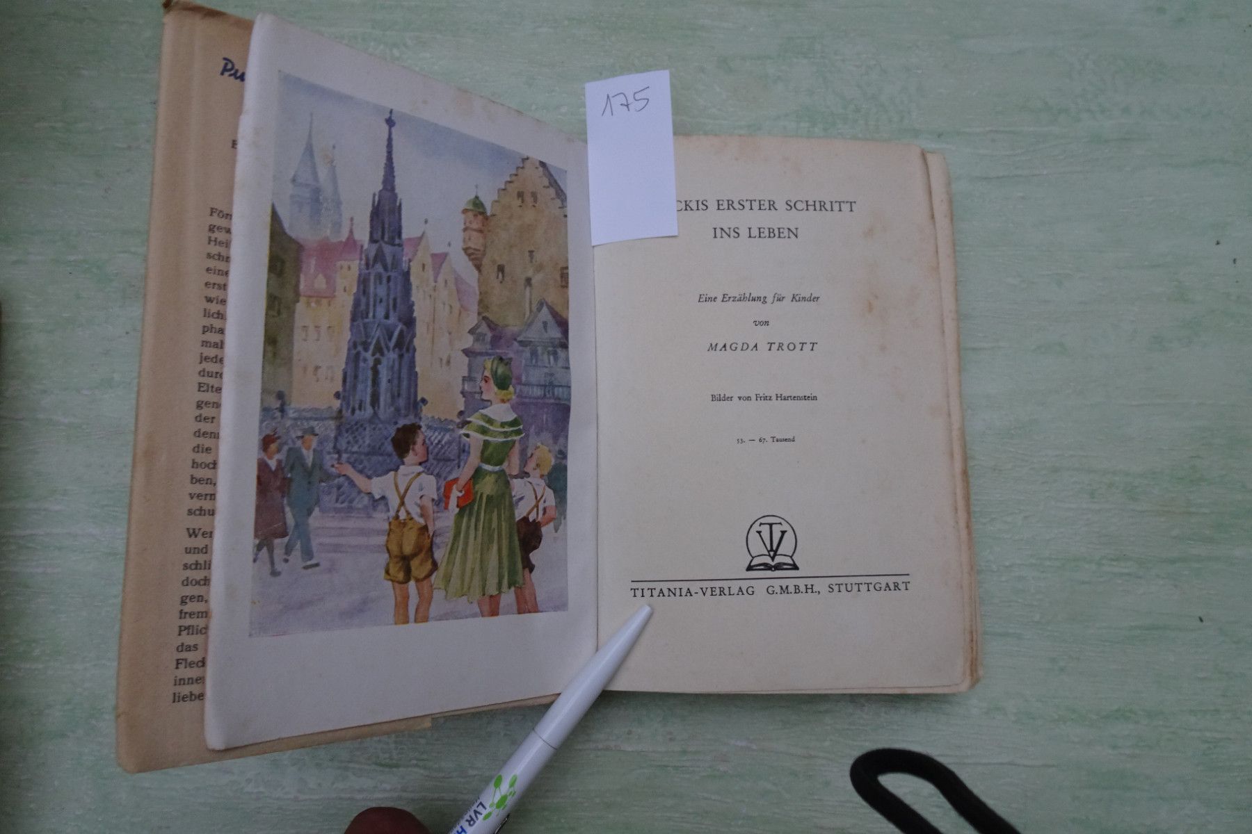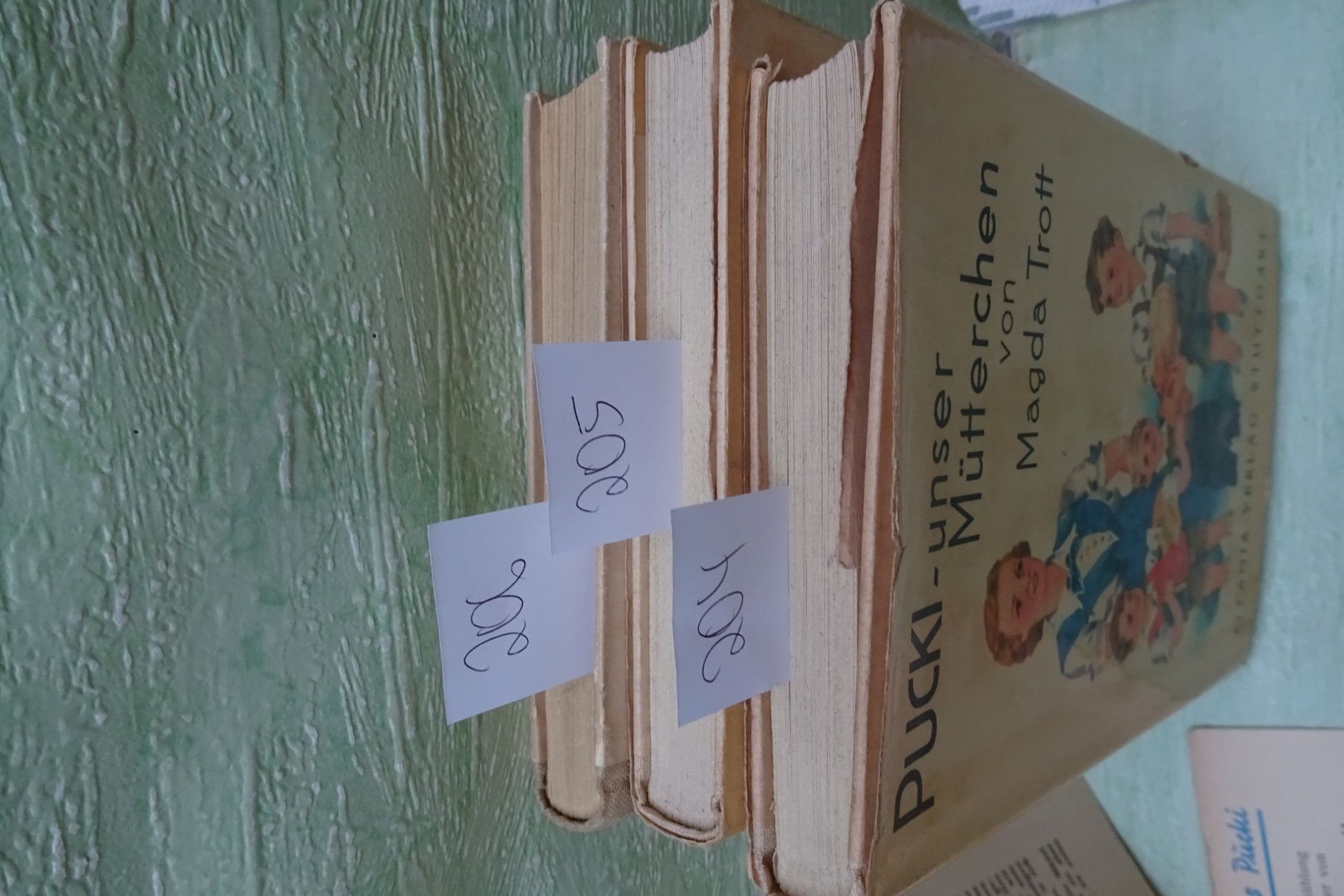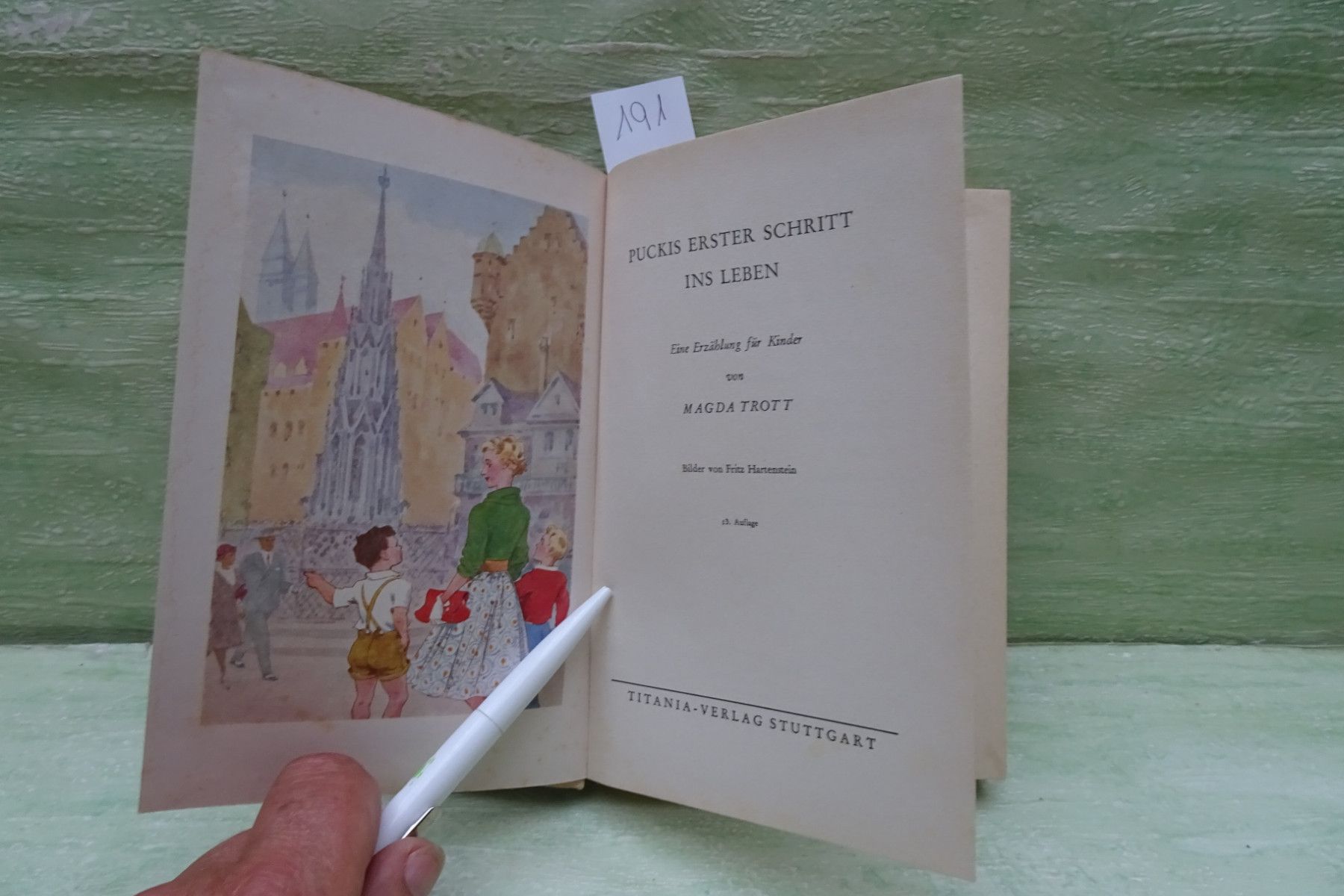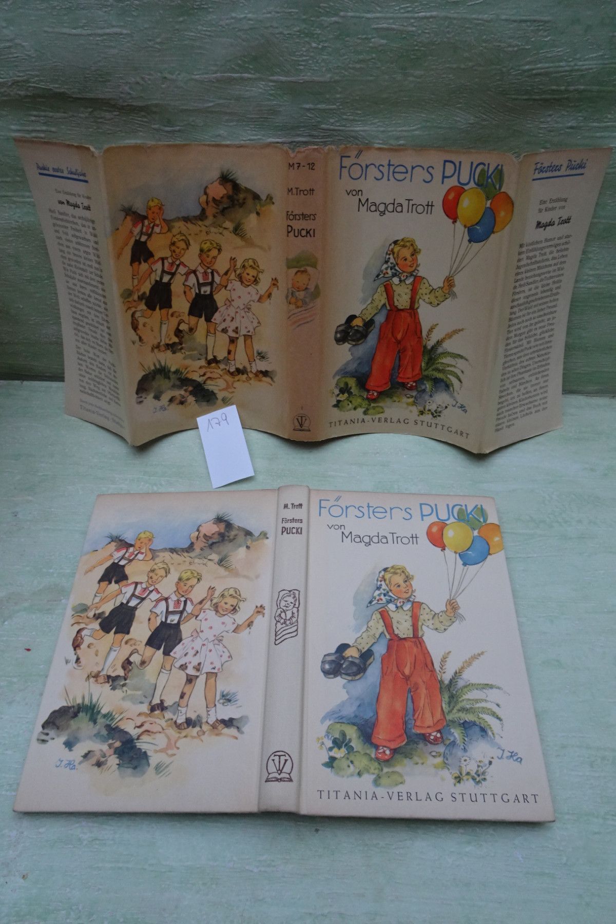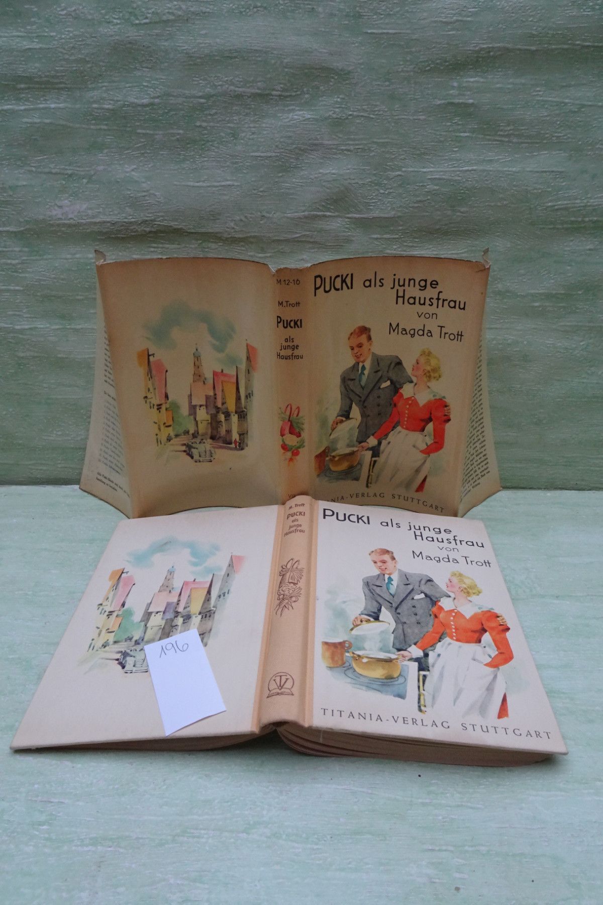 Jugend- & Kinderbücher ... Erinnerungen ..... Magda Trott Pucki -Auswahl- Titania Verlag Stuttgart . . alte Pucki Bände , alle mit Vollbild vorne . 172: Puckis neue Streiche Buchschmuck G Kirchbach Frakturschrift , 35.-44. Tausend , Fadenbindung Titania Verlag GmbH , Stuttgart Zustand : gut . 17