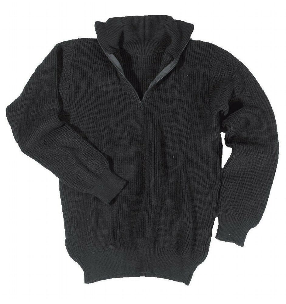 Matrosen Pullover Seemannspullover, sogenannter Troyer. Material: 100% Polyacryl (750g qm). Hersteller: Sturm, Farbe: schwarz. Bitte wählen Sie die gewünschte Größe. Produkteigenschaften: - Langer, hoher Kragen mit Reißverschluss - Strickbund an Ärmeln und Saum