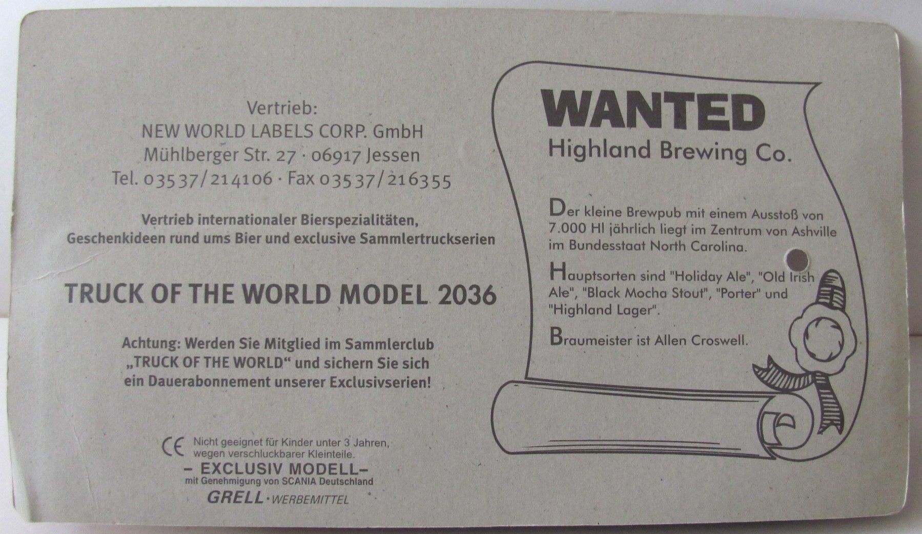 Truck of the World Nr.036 - Highland Brewing Company - Scania - Sattelzug
