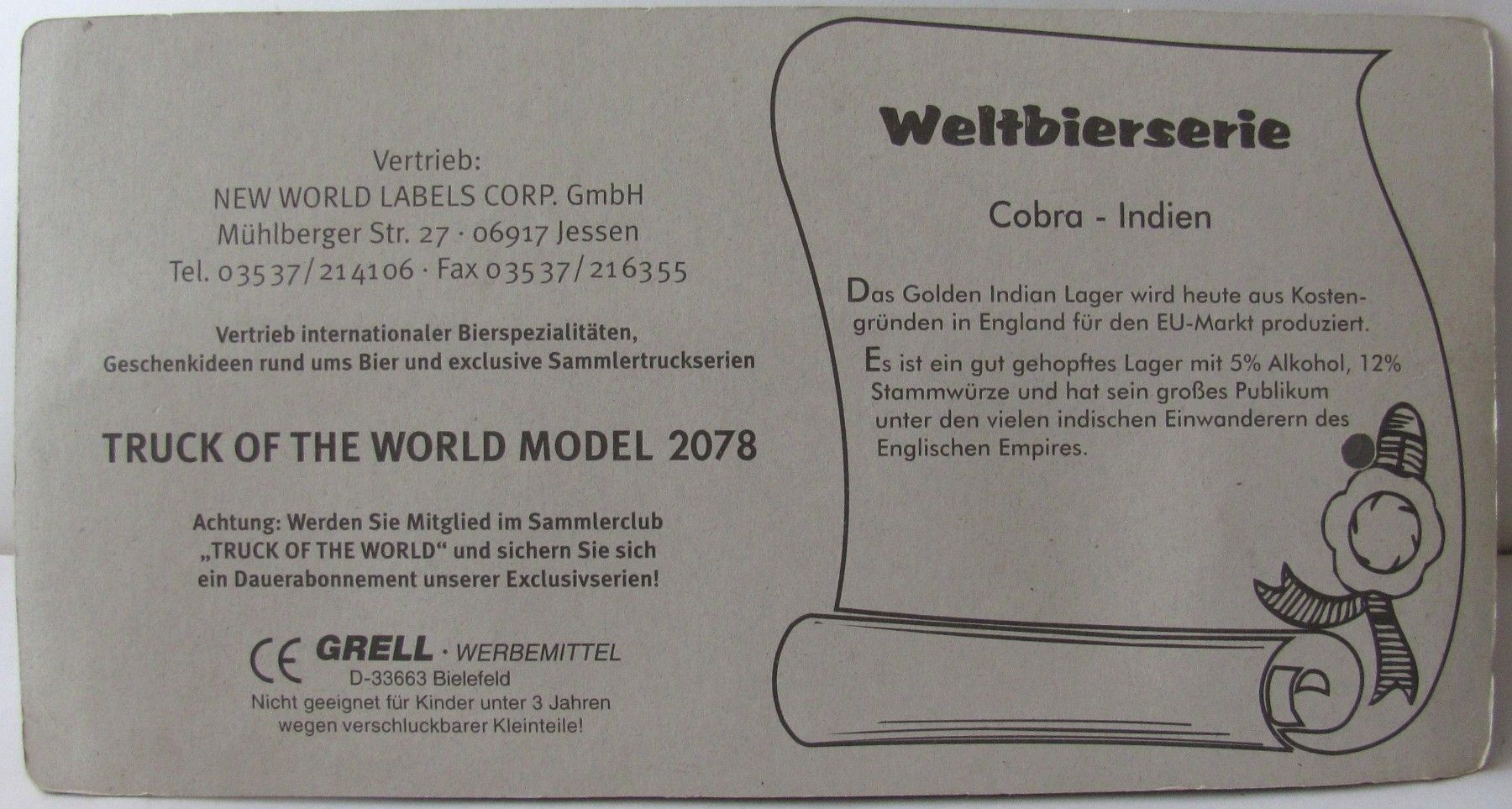 Truck of the World Nr.078 - Cobra, Indian Beer - Ford 9000 - US Sattelzug