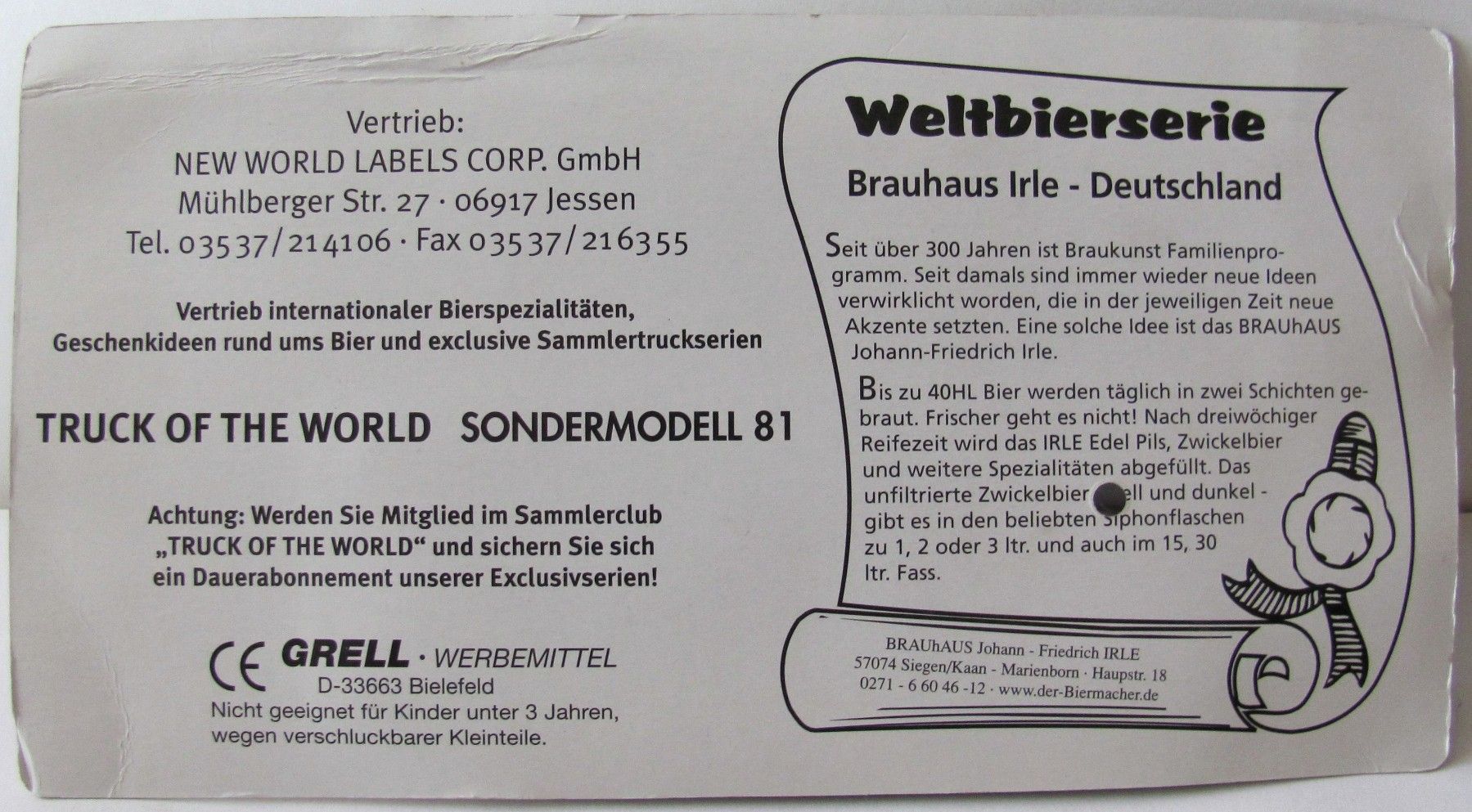 Truck of the World Nr. S077 - Brauhaus Irle, Deutschland - Magirus Deutz 2C1 - Hz