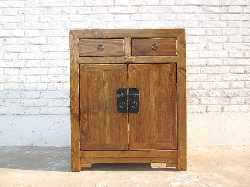 Truhe oder Katzen Klo in Naturholz Landhaus Stil Metallbeschlag Eintritt rechts