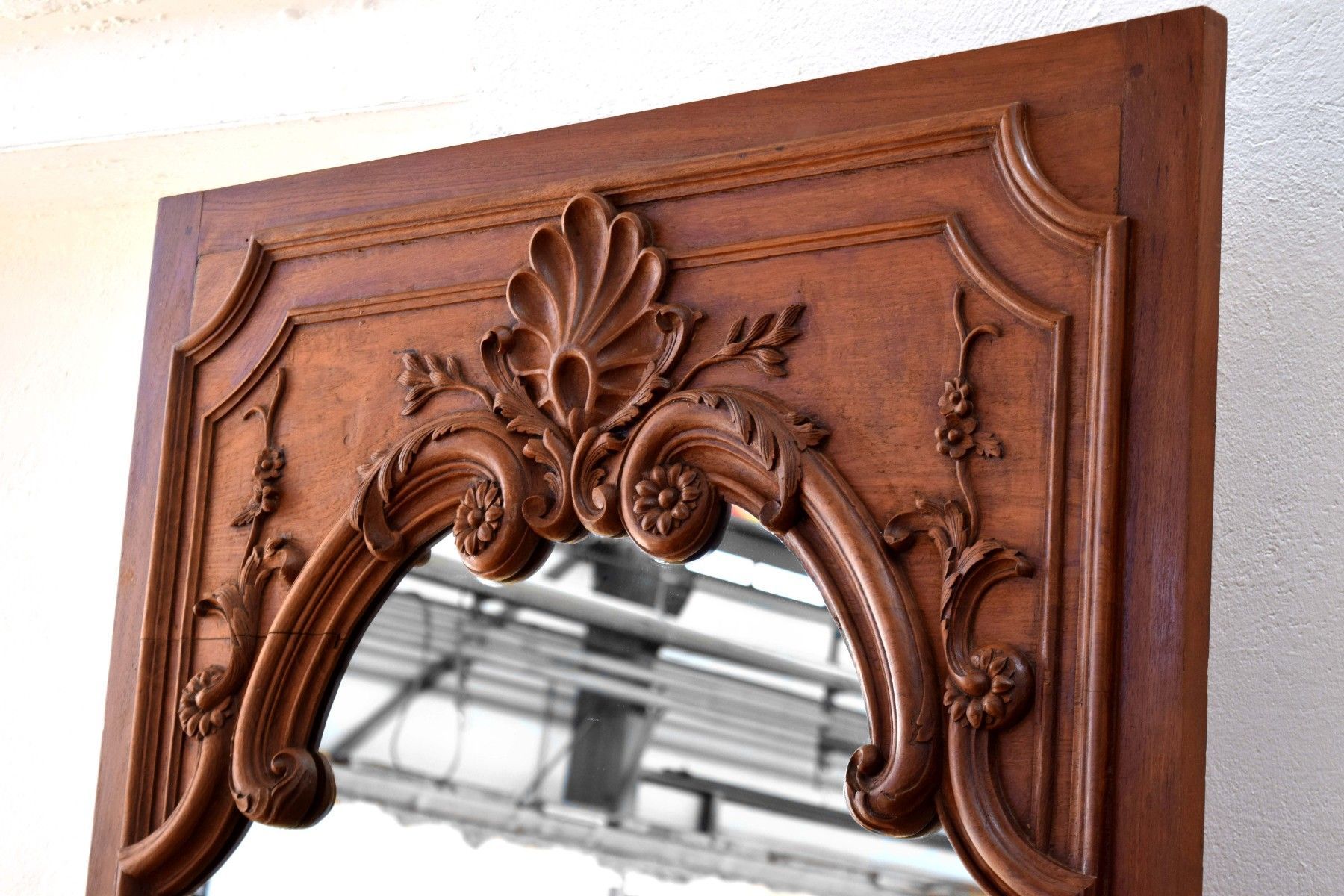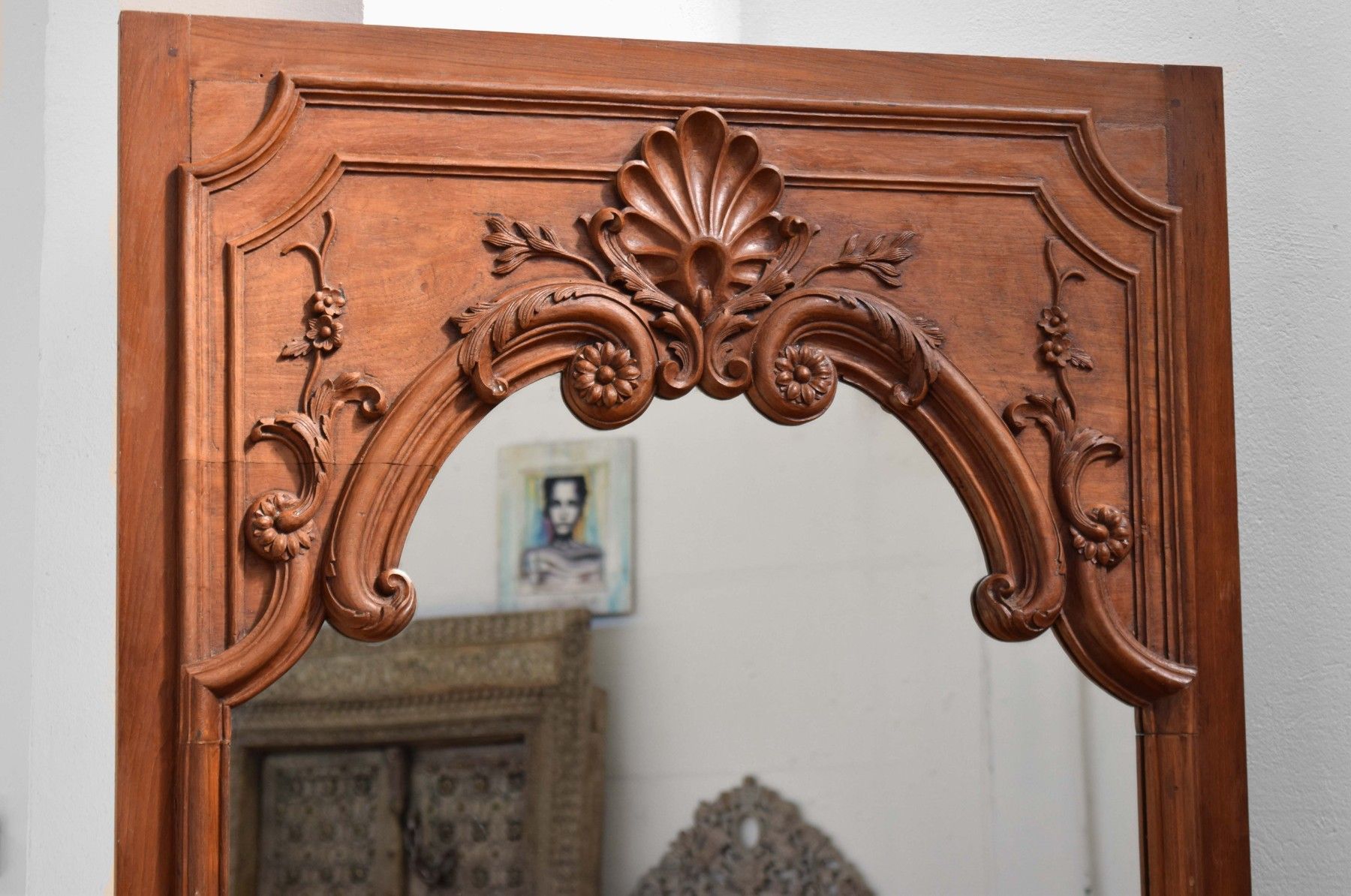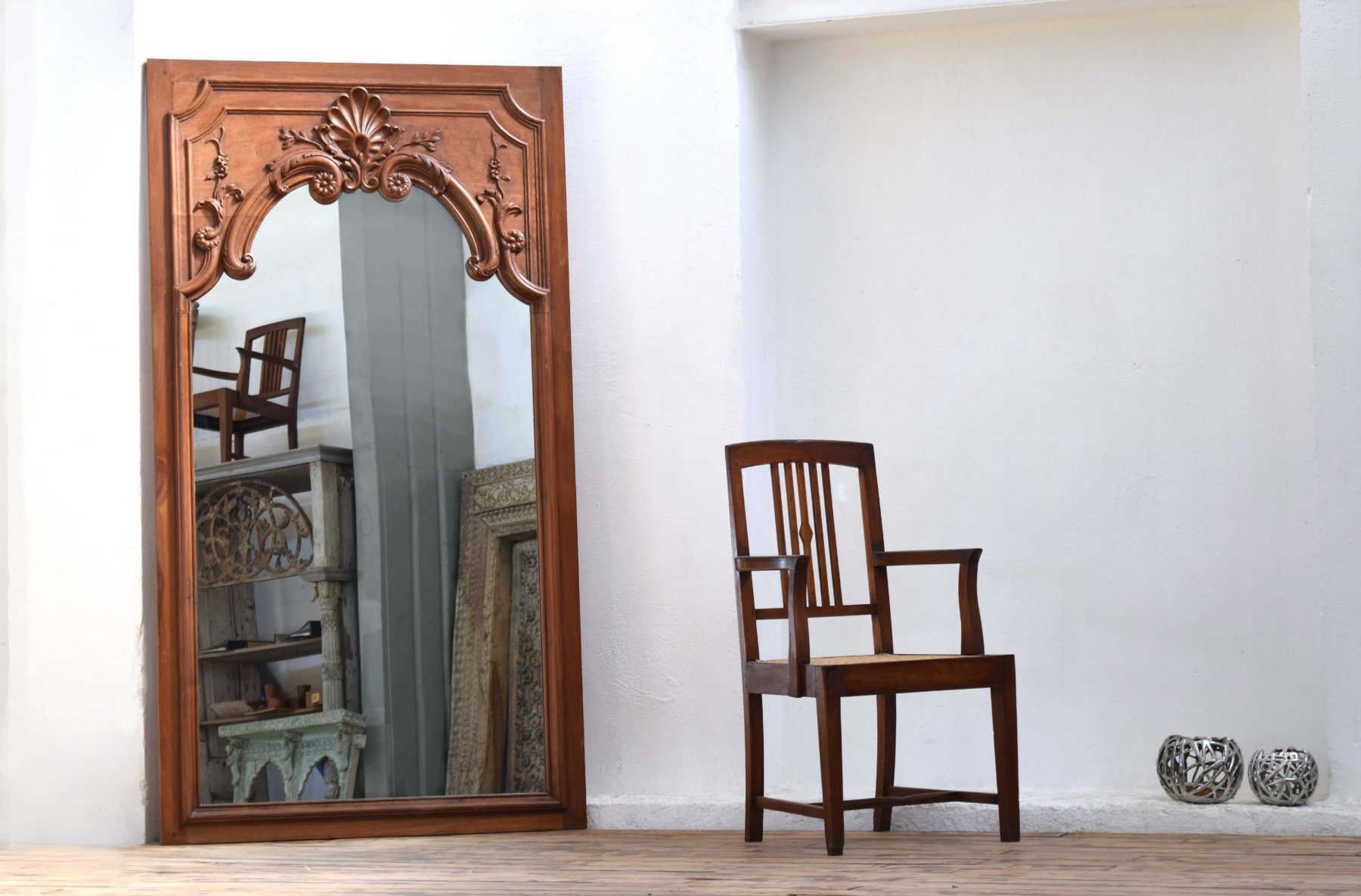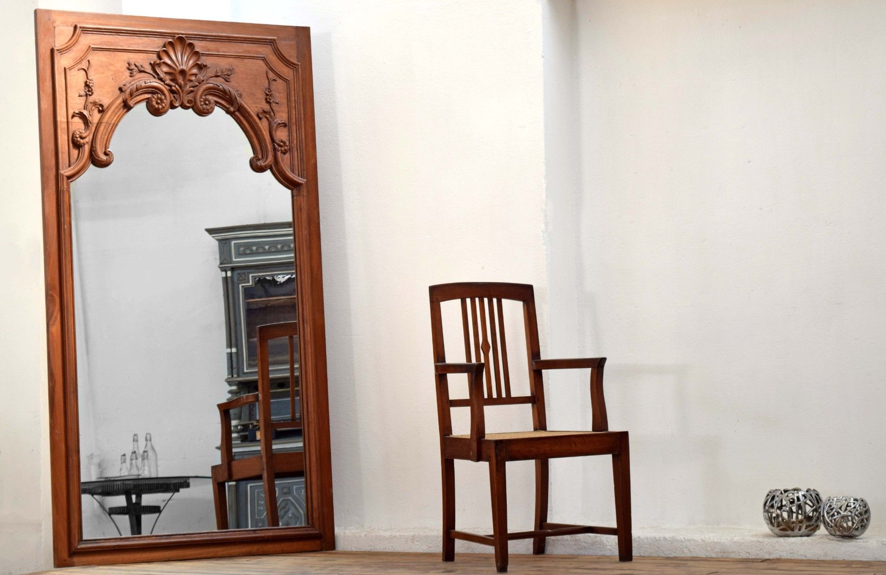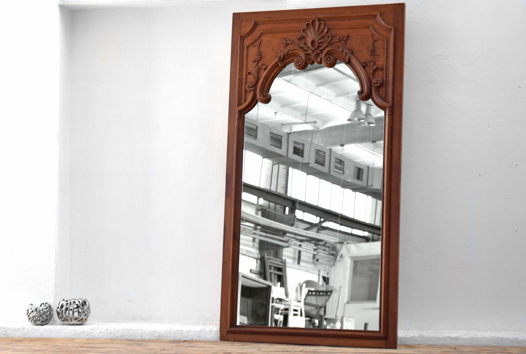 Trumeau Ganzkörper Spiegel Groß 200cm Teak Massiv Holz Antik Alt Vintage Schellack