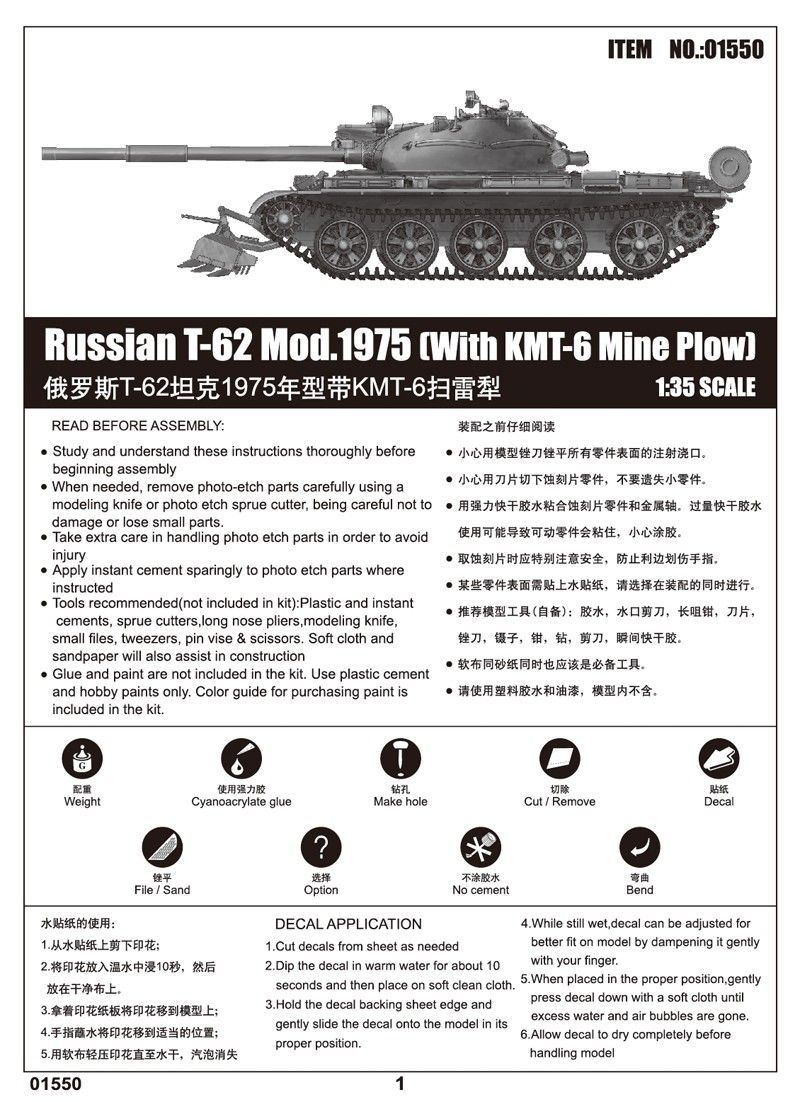 Trumpeter Russian T-62 with KMT Mine Plow 9361550 in 1:35 Trumpeter 1550 01550