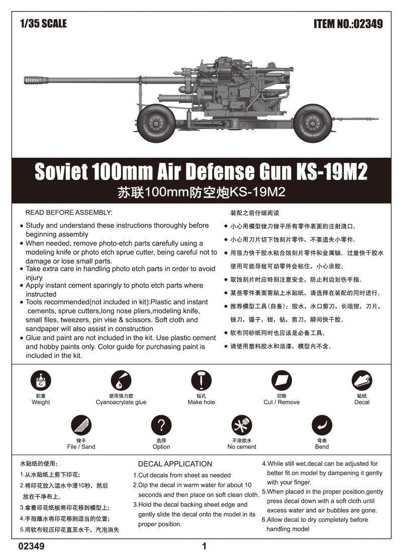 Trumpeter Soviet 100mm Air Defense Gun KS-19M2 9362349 in 1:35 Trumpeter 2349 02349