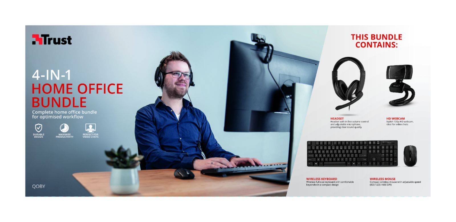 Trust Trust Home Office Set kabellose Tastatur + Maus + HD Webcam + Headset NEU OVP