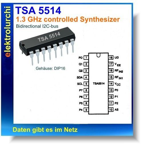 Sie bieten hier auf folgenden Artikel 1 Stück TSA5514 - 1,3GHz bidirectional I²C-bus Synthesizer, IC, DIP18, Lieferumfang 1 Stück 1,3GHz bidirectional I²C-bus Synthesizer (neu)
