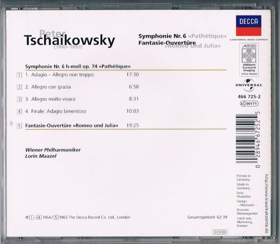 Tschaikowsky - Symphonie ´Pathetique´ + Fantasie Ouvertüre ´Romeo und Julia´ - CD