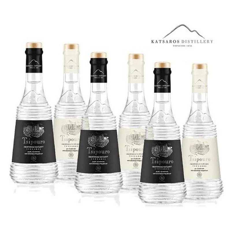 Tsipouro Katsaros aus Tirnavos 6x 200ml mit und ohne Anis in exklusiver Karaffe