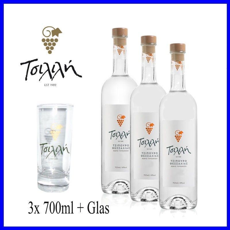 Tsipouro Tsilili 3x 700ml ohne Anis Traubenbrand aus Thessalien
