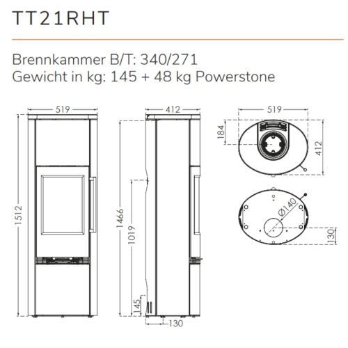 TermaTech TT21RHT Kaminofen Schwarz 5kW optionaler Speicherofen