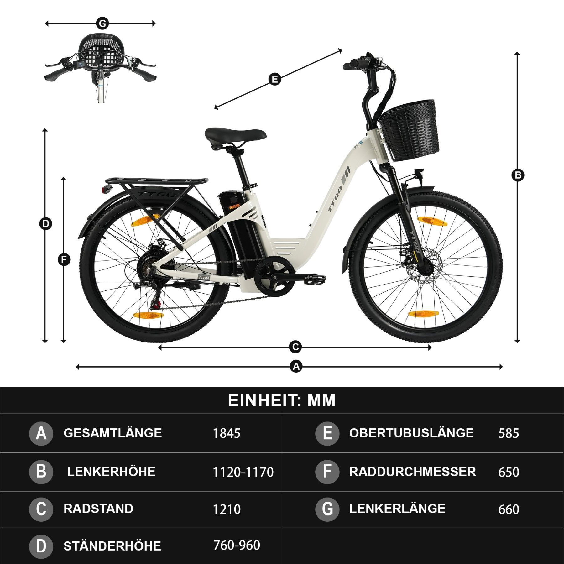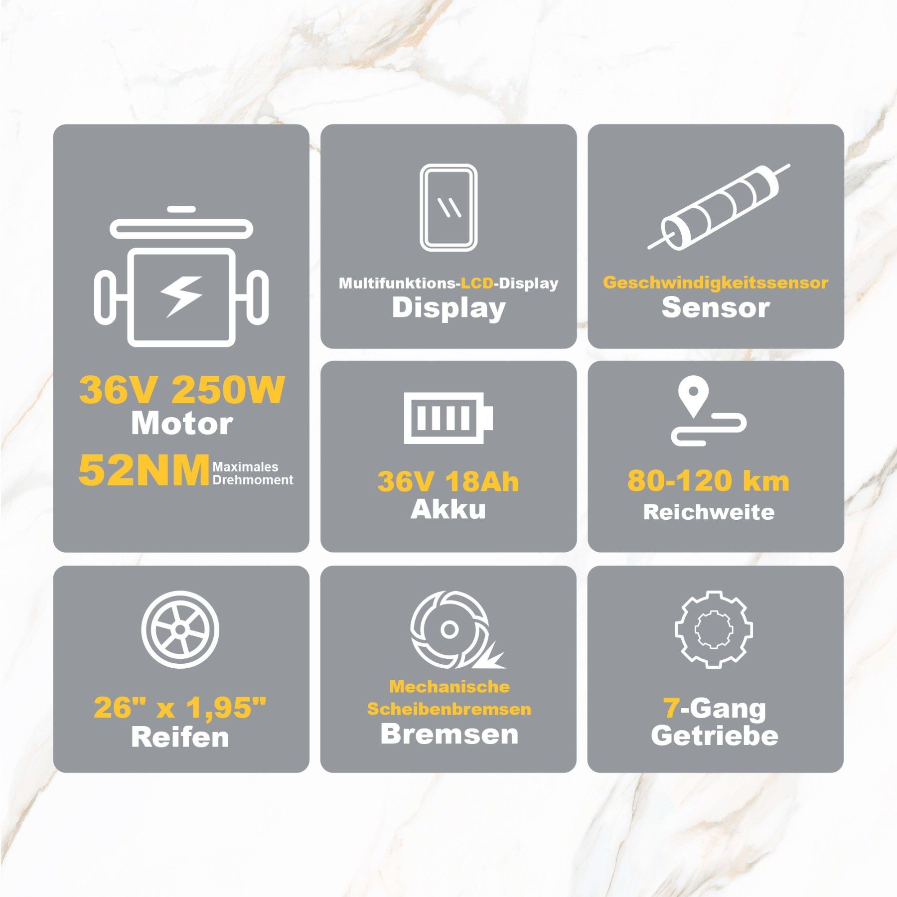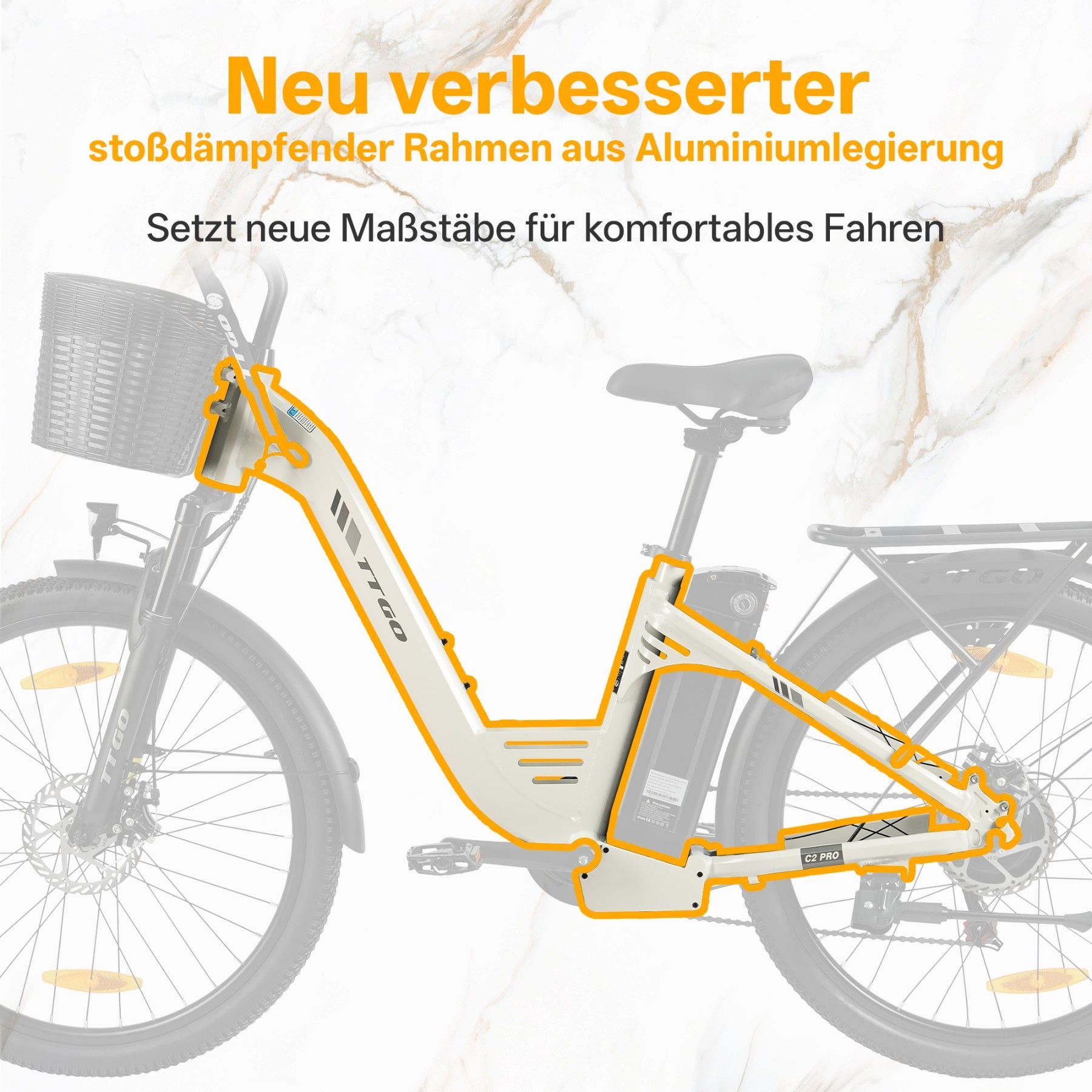 TTGO C2 PRO 26Zoll E-Bike 250W 52Nm 80-120km Reichweite Elektrofahrrad 36V 18Ah ebike
