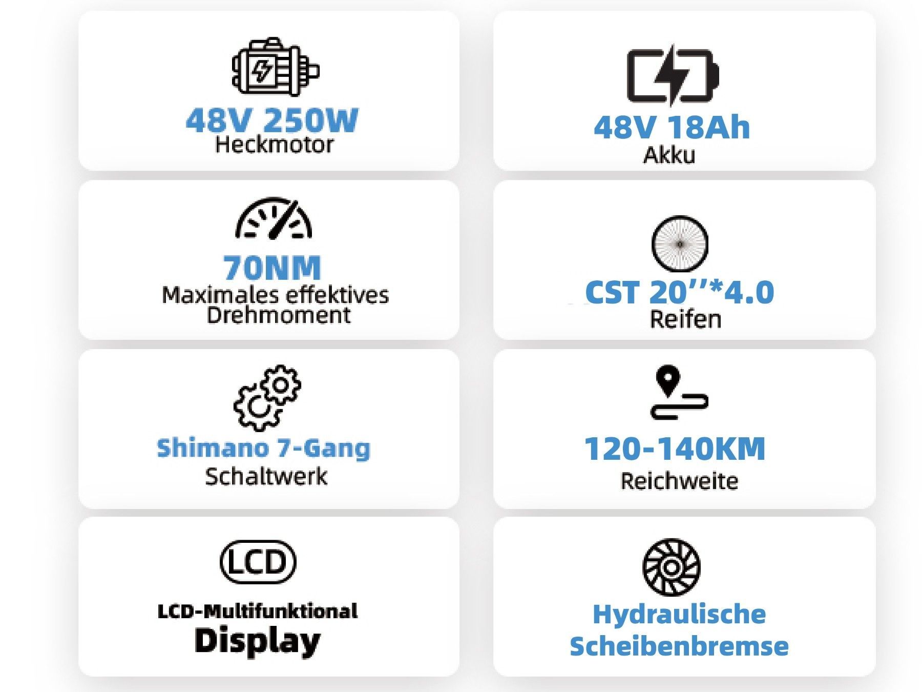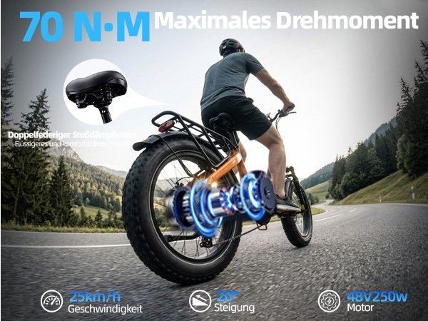 48V 18Ah Akku, 70 N·m Drehmoment, 120–140 km Reichweite, 7-Gang, 20"×4,0" Reifen