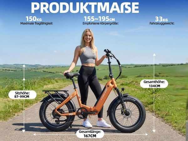 • Bitte lesen Sie vor der ersten Fahrt alle Anweisungen in der Bedienungsanleitung sorgfältig durch. Bevor Sie ein E-Bike kaufen, informieren Sie sich bitte über die örtlichen Verkehrsregeln, ob die Nutzung auf öffentlichen Straßen erlaubt ist, und halten Sie sich an diese. Wir empfehlen das Tragen eines Helms. Stellen Sie sicher, dass das Fahrrad während des Ladevorgangs ausgeschaltet ist und ziehen Sie regelmäßig alle Schrauben fest. Dies erhöht nicht nur die Sicherheit, sondern verlängert auch die Lebensdauer des Fahrrads. Bitte beachten Sie alle geltenden Verkehrsregeln. Von Fahrten bei Rege