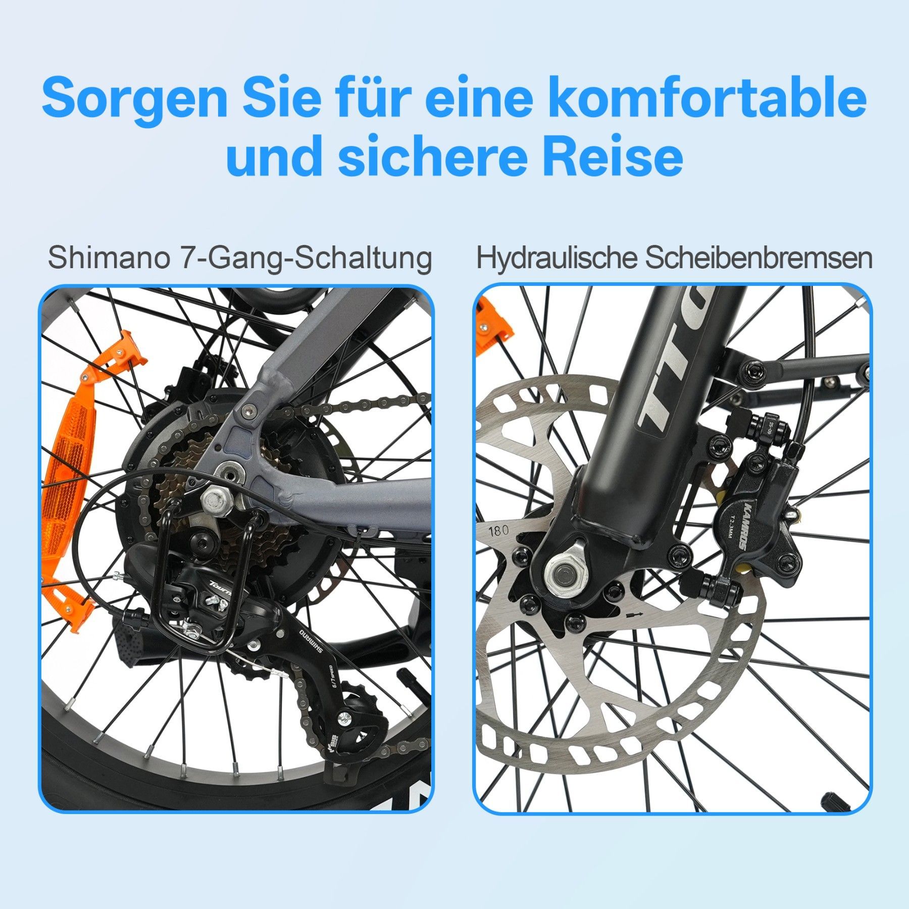 • Bitte lesen Sie vor der ersten Fahrt alle Anweisungen in der Bedienungsanleitung sorgfältig durch. Bevor Sie ein E-Bike kaufen, informieren Sie sich bitte über die örtlichen Verkehrsregeln, ob die Nutzung auf öffentlichen Straßen erlaubt ist, und halten Sie sich an diese. Wir empfehlen das Tragen eines Helms. Stellen Sie sicher, dass das Fahrrad während des Ladevorgangs ausgeschaltet ist und ziehen Sie regelmäßig alle Schrauben fest. Dies erhöht nicht nur die Sicherheit, sondern verlängert auch die Lebensdauer des Fahrrads. Bitte beachten Sie alle geltenden Verkehrsregeln. Von Fahrten bei Rege