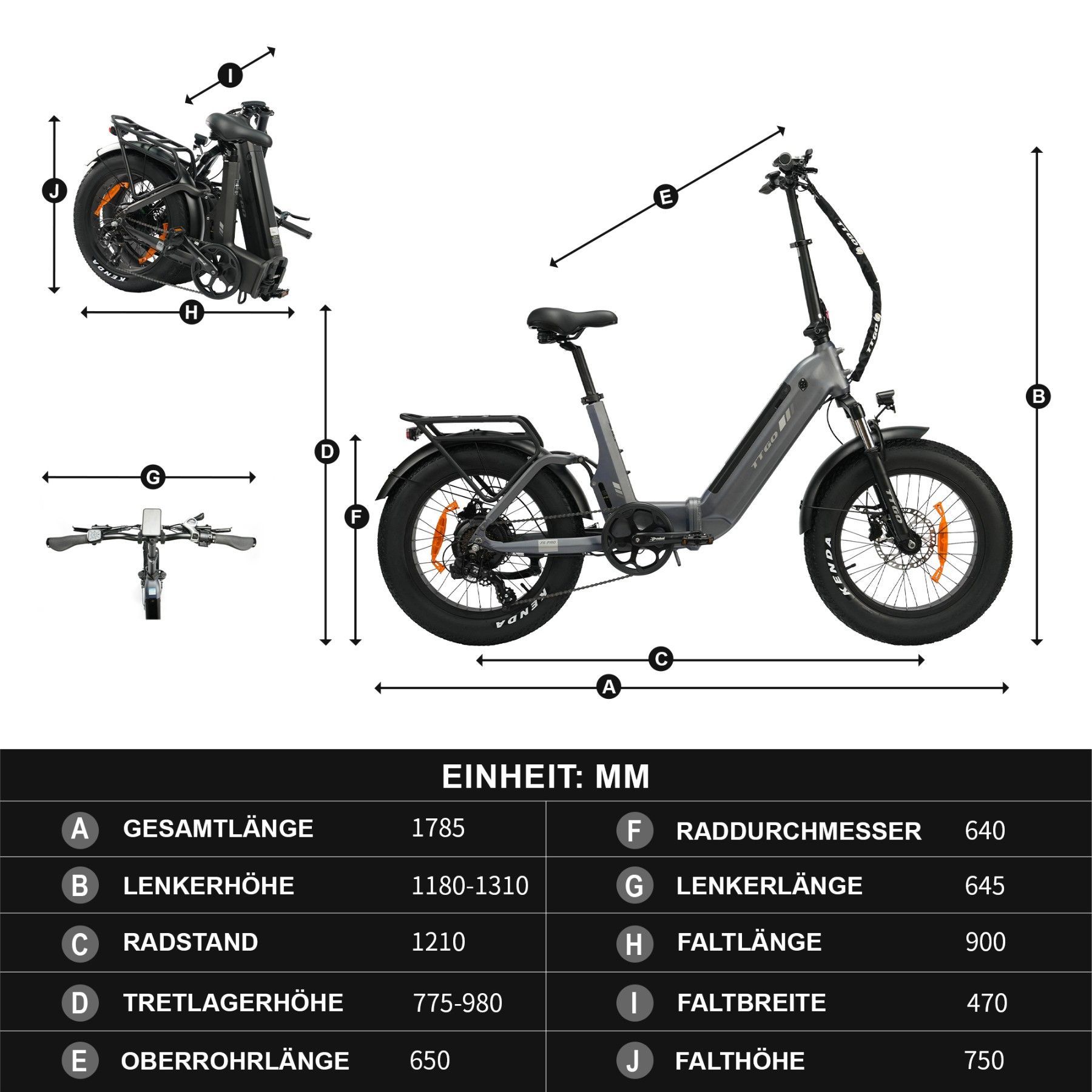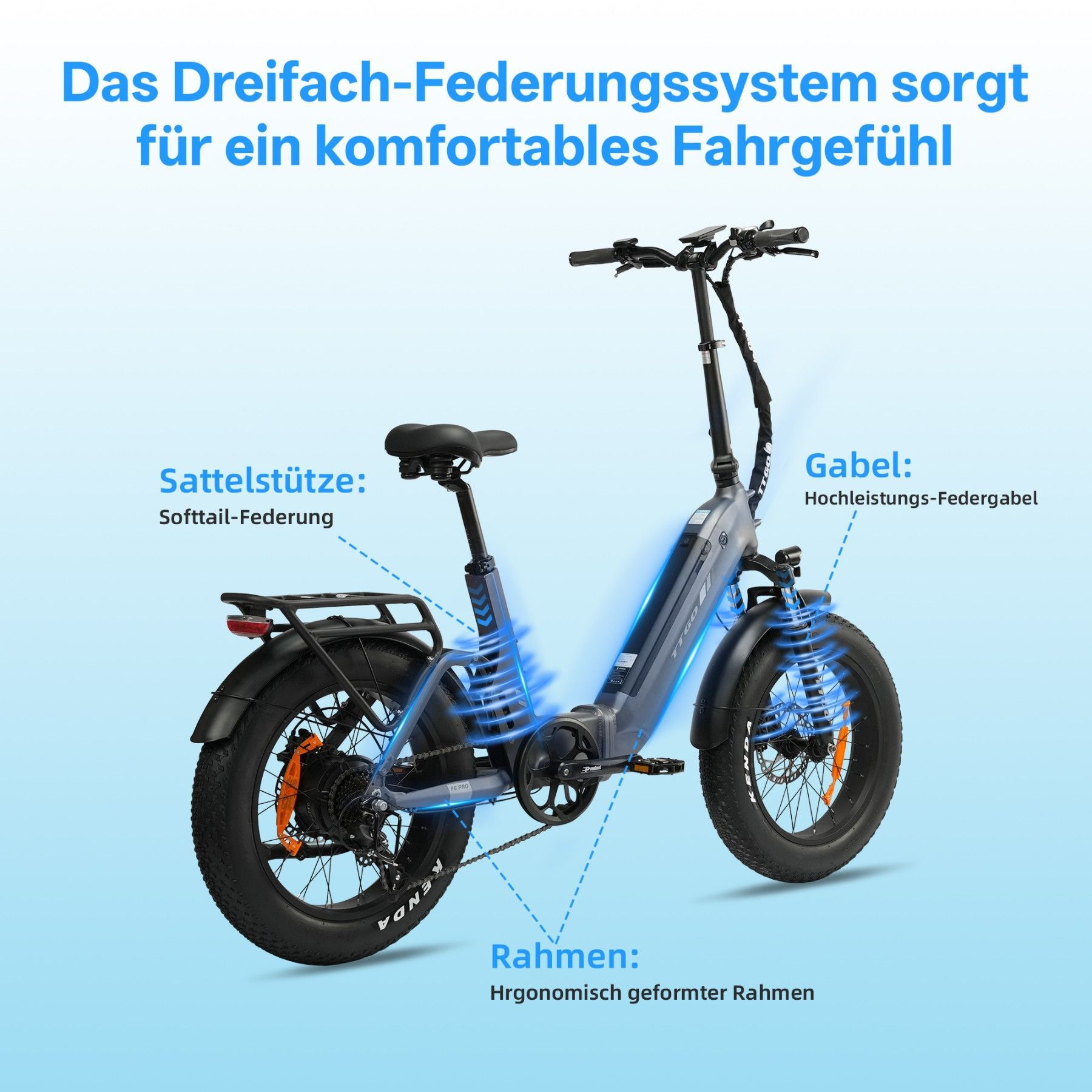 TTGO F6 PRO 20" Fatbike 250W 70Nm 140km eBike Elektrofahrrad Faltbar 48V 18Ah E-Bike
