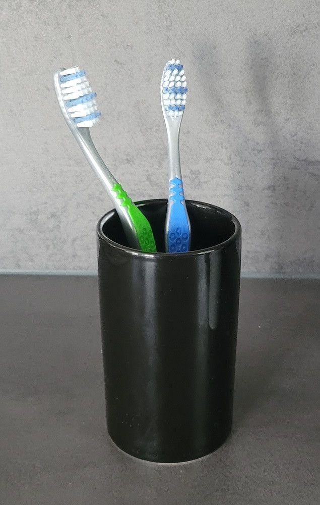 Tube Black Schwarz Zahnbecher Becher Zahnbürstenhalter Steingut