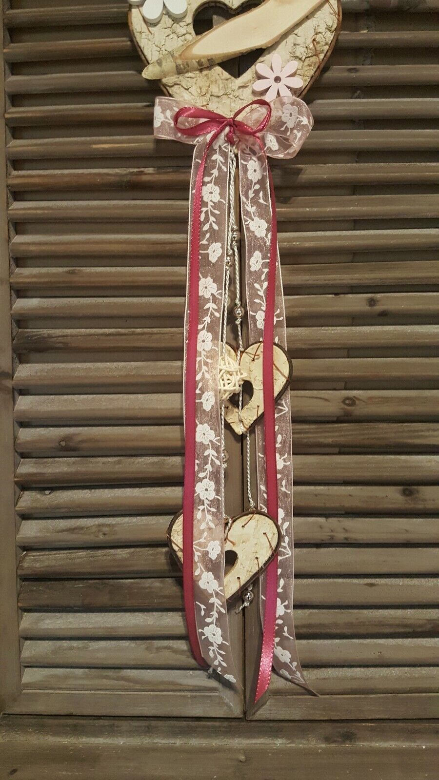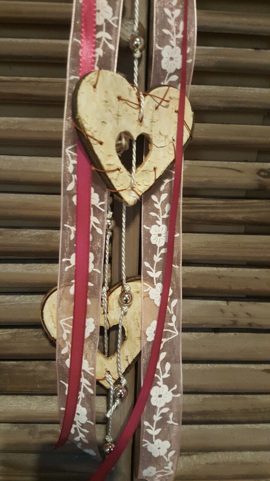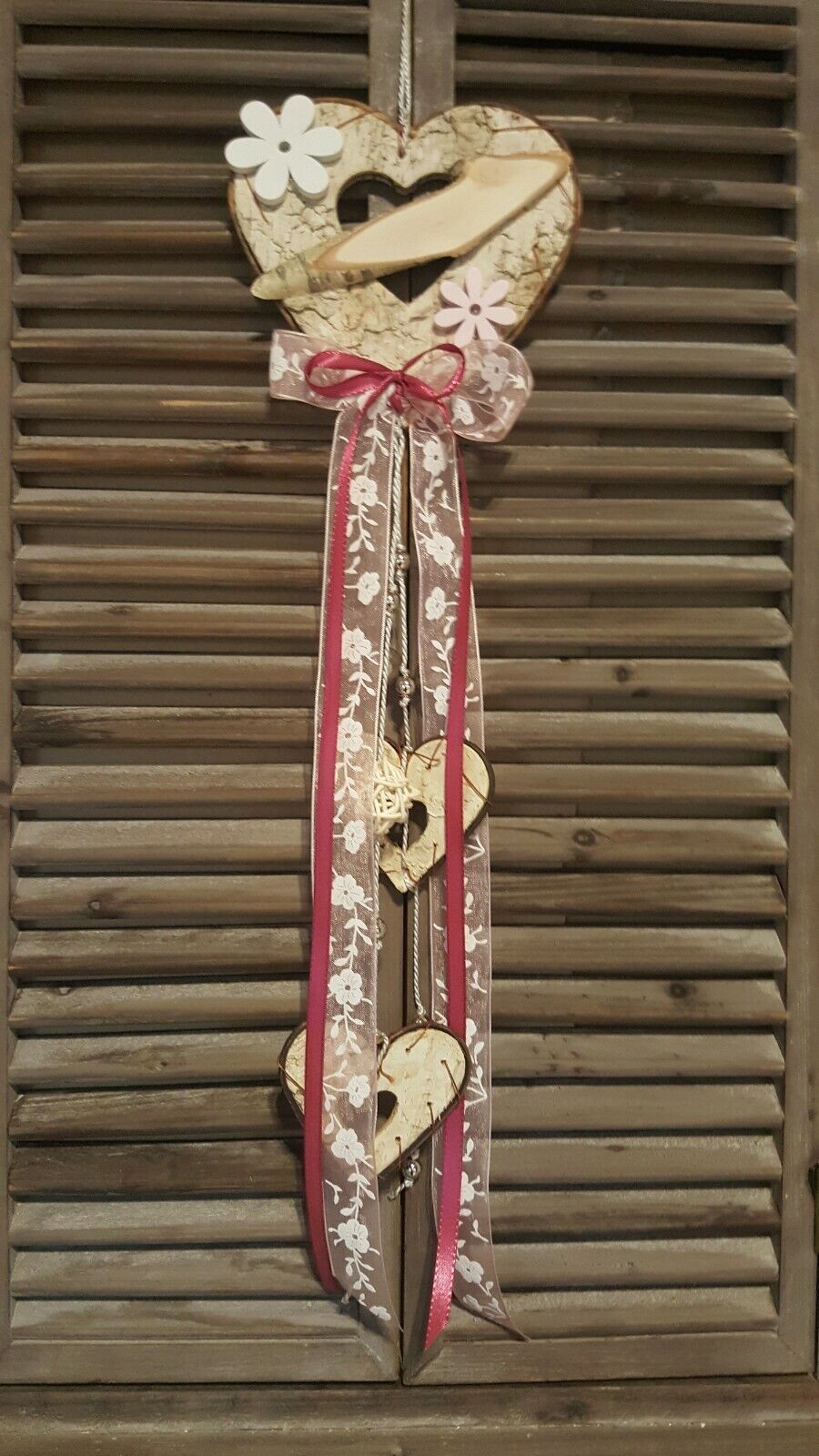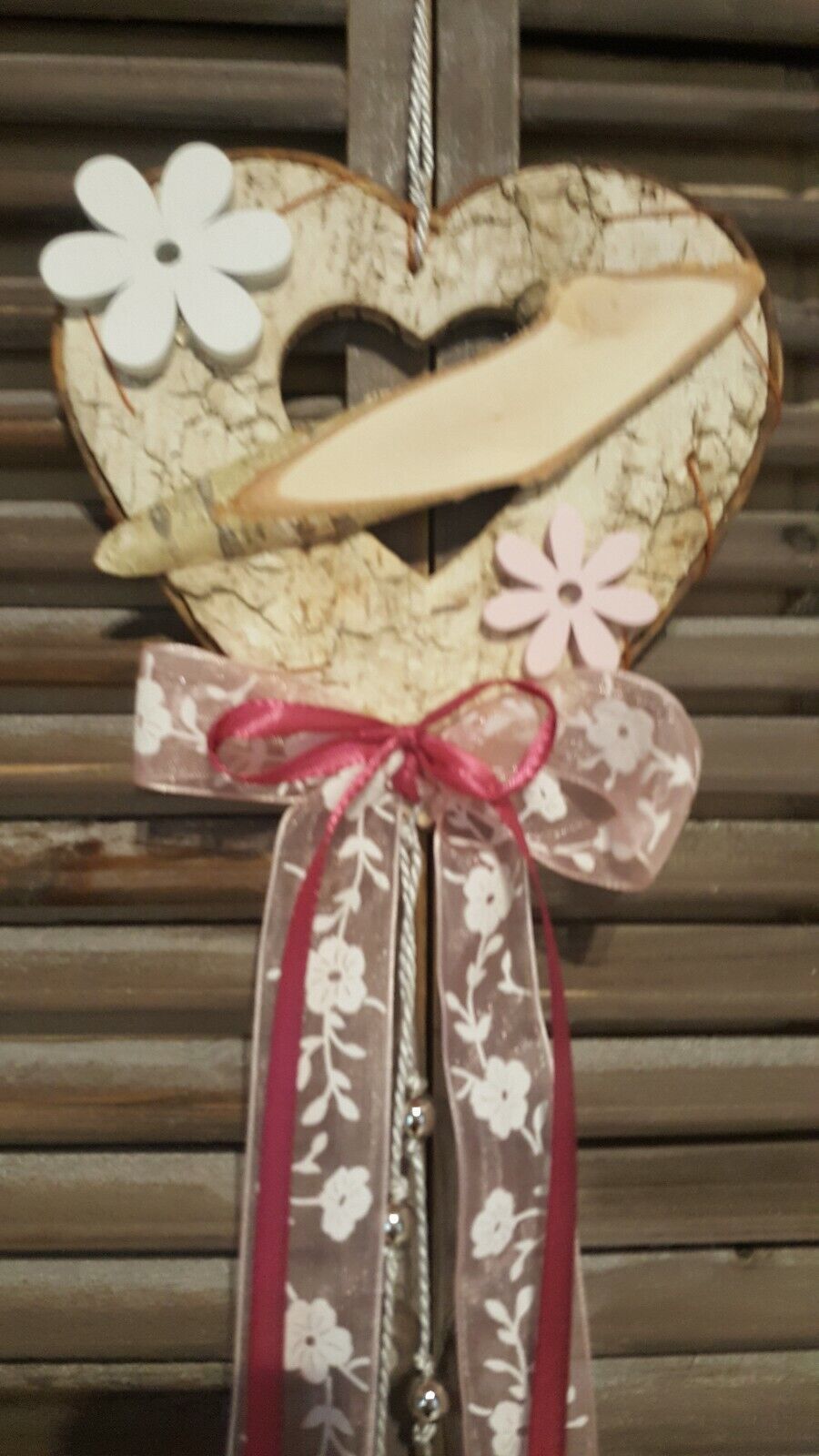 Türdekohänger Willkommen Frühling Holzherz Schild blau rosa grün Birkenrinde Landhaus