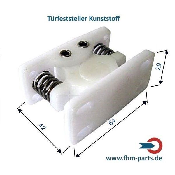 Türfeststeller weiß Türhalter Türstopper Türfeststeller Wohnwagen Wohnmobil Caravan Boot 2 teilig zur Arretierung von Türen, Fenster, Kofferklappen usw. Maße: Zapfenteil: 64 x 29 mm, Lochbild: 4 Langlöcher ø5 mm 54 x 17 mm Backenteil: 64 x 29 mm, Lochbild: 4 Langlöcher ø5 mm 54 x 17 mm