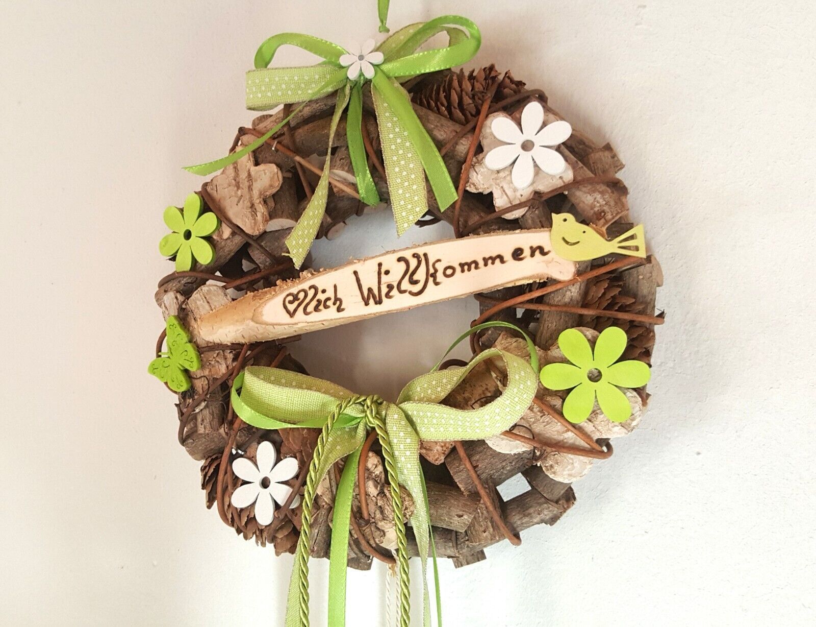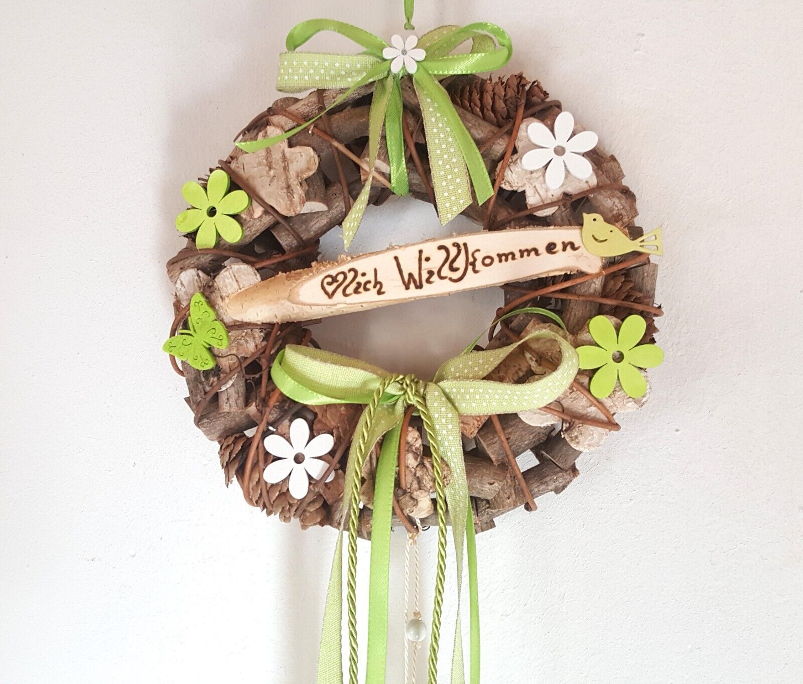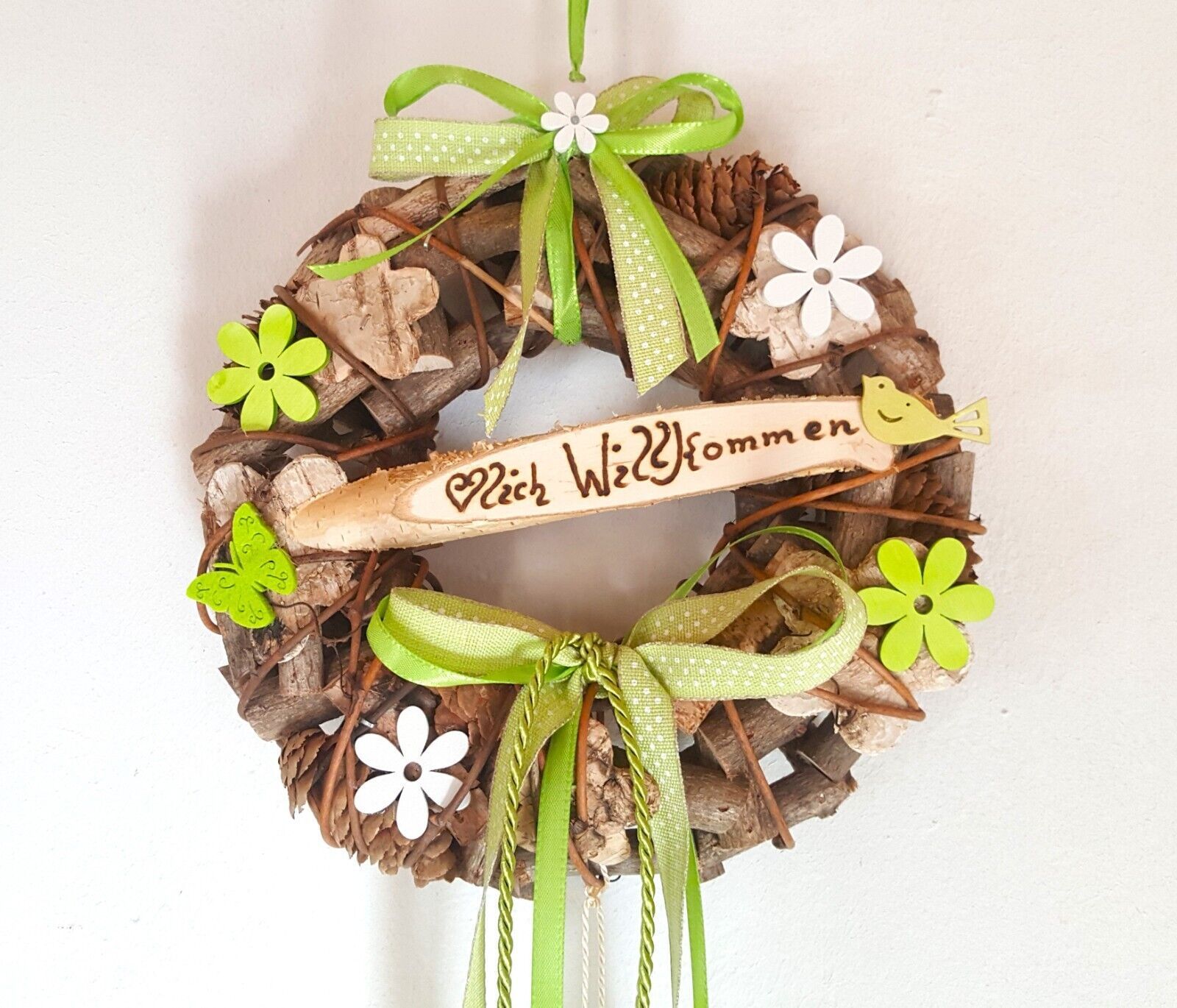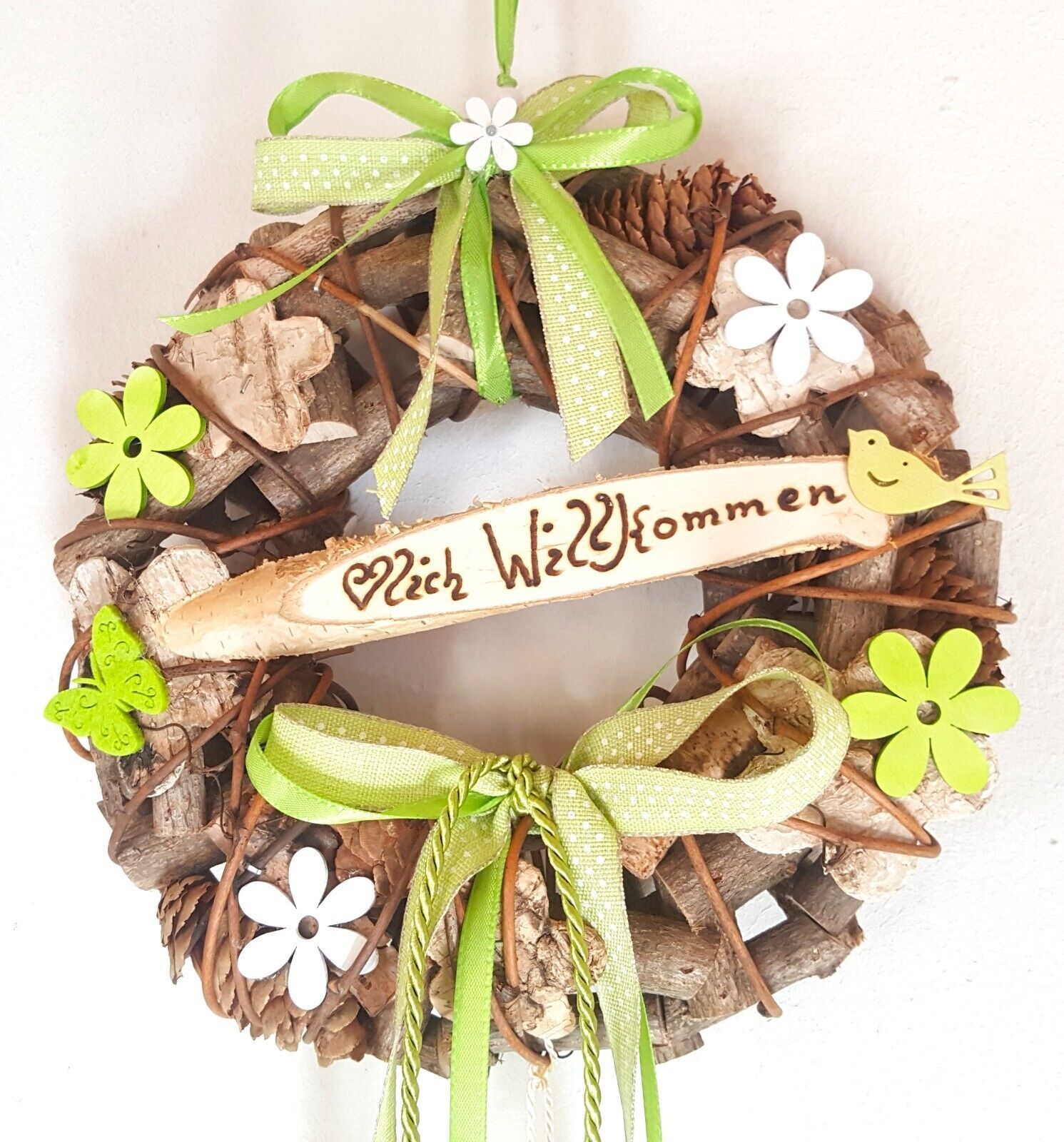 Türkranz sommer willkommen naturkranz holzkranz landhaus türdeko wetterfest 25cm