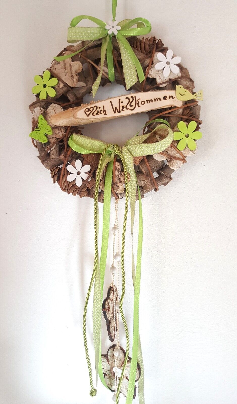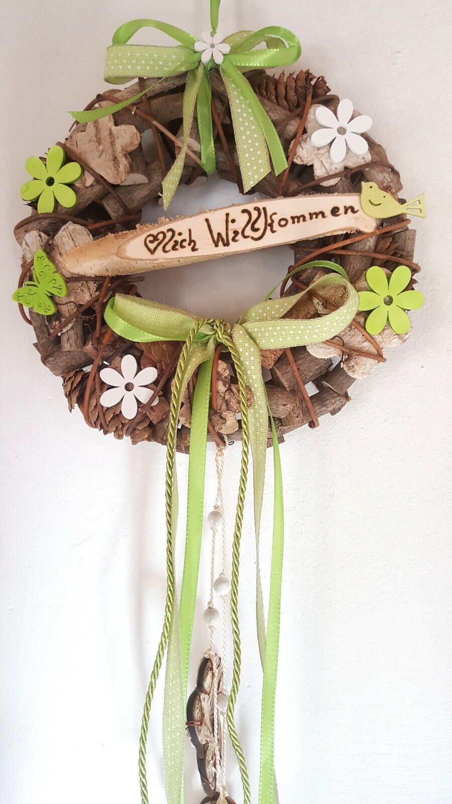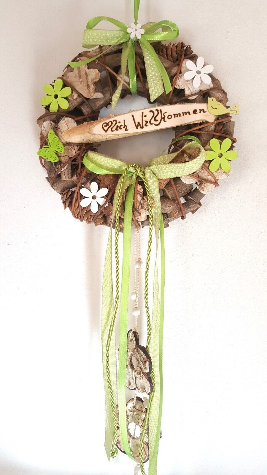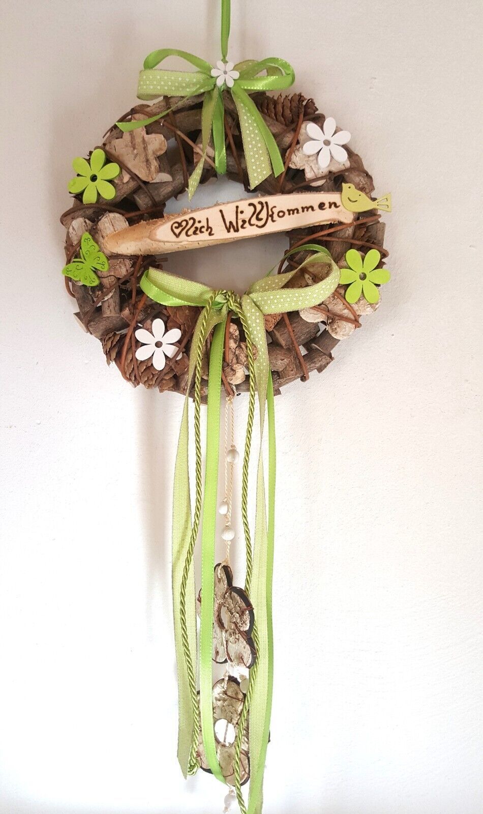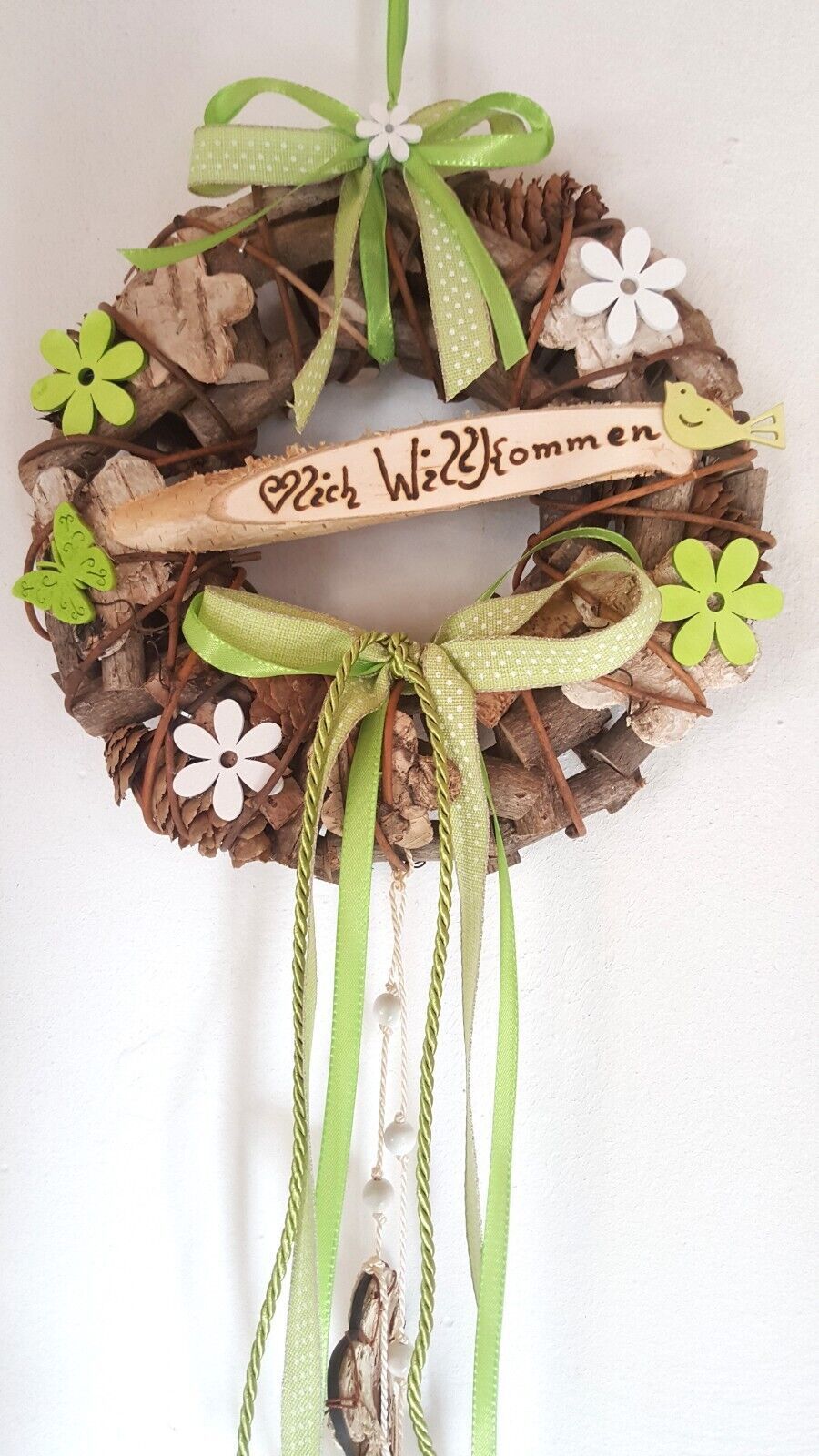 Türkranz sommer willkommen naturkranz holzkranz landhaus türdeko wetterfest 25cm