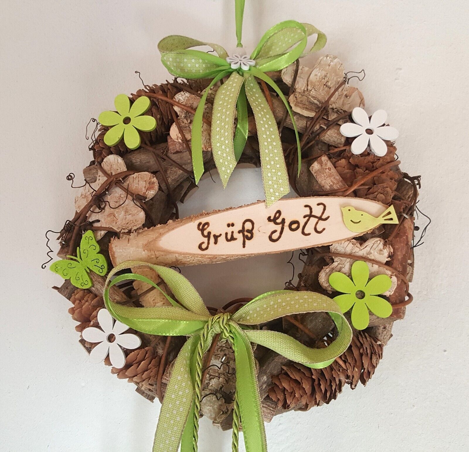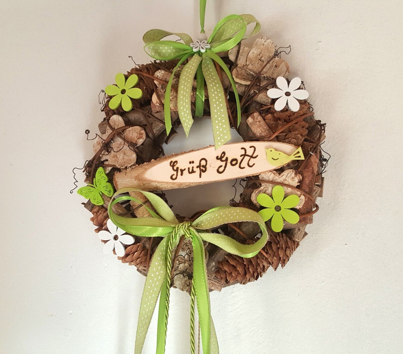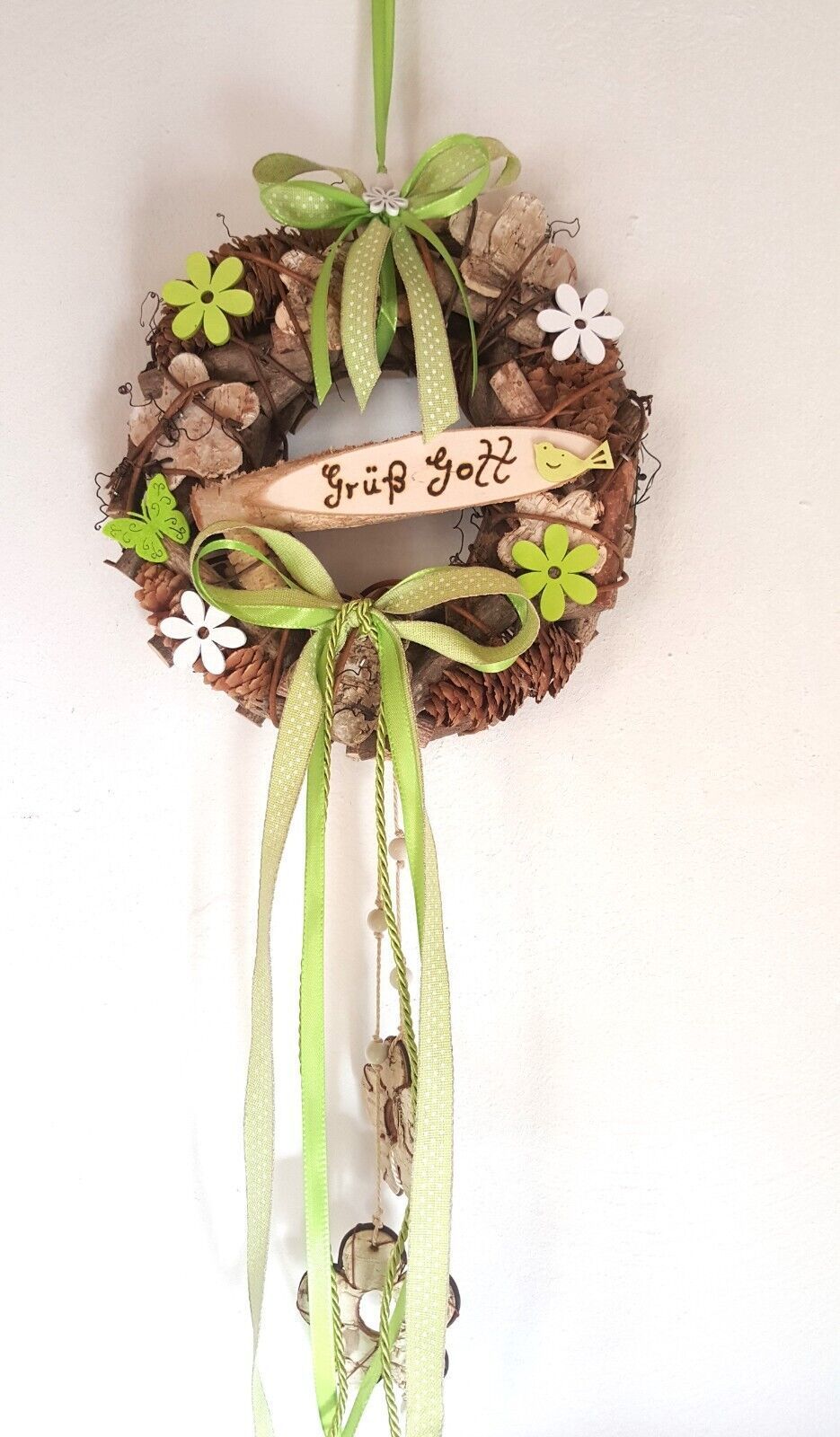 Kranz Grüß Gott grün und herzlich Willkommen grün