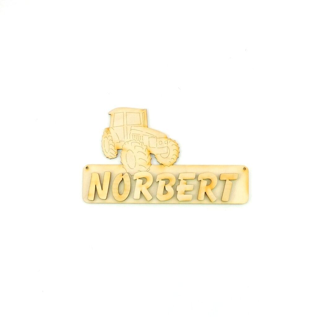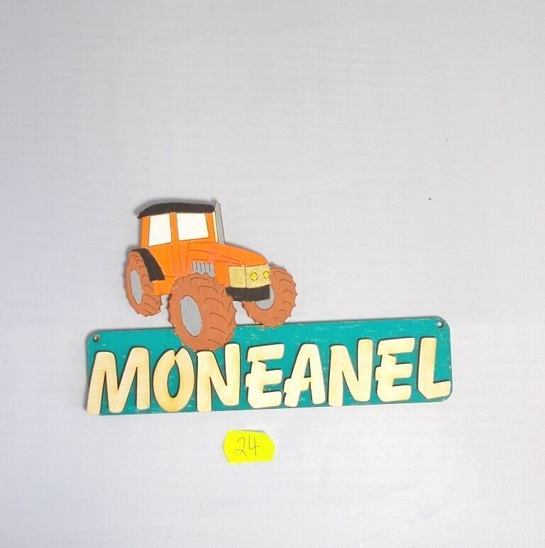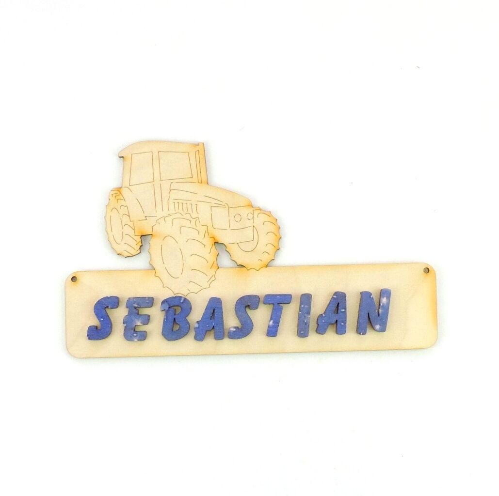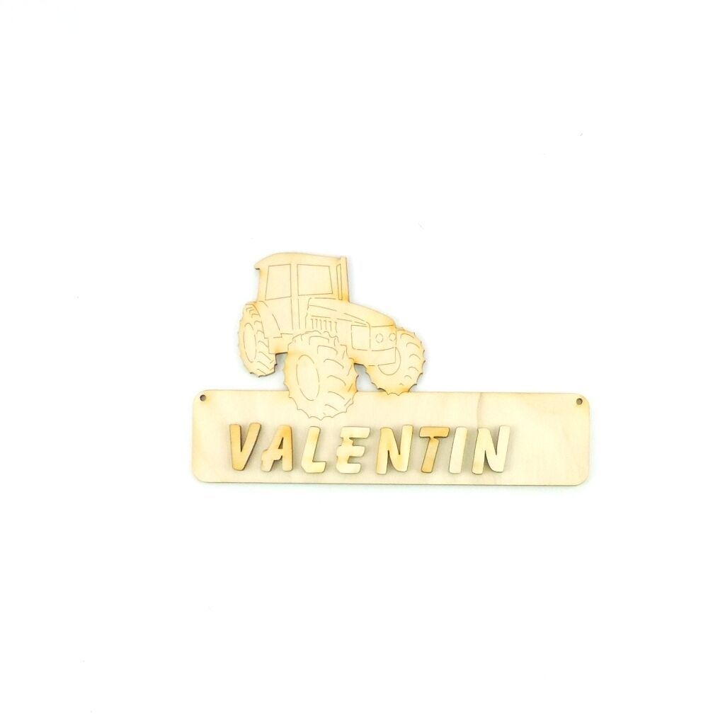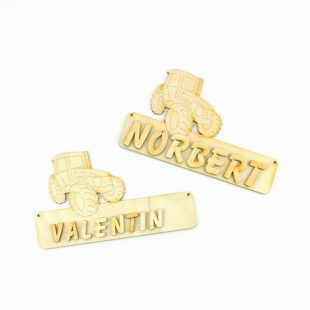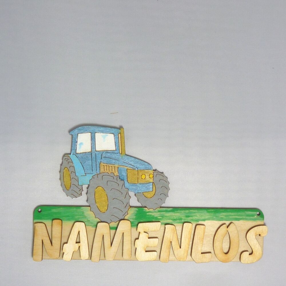 Türschild Kinderzimmer mit farbigen Buchstaben 18cm Holz, John Deere Traktor