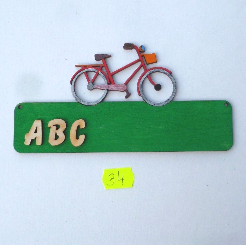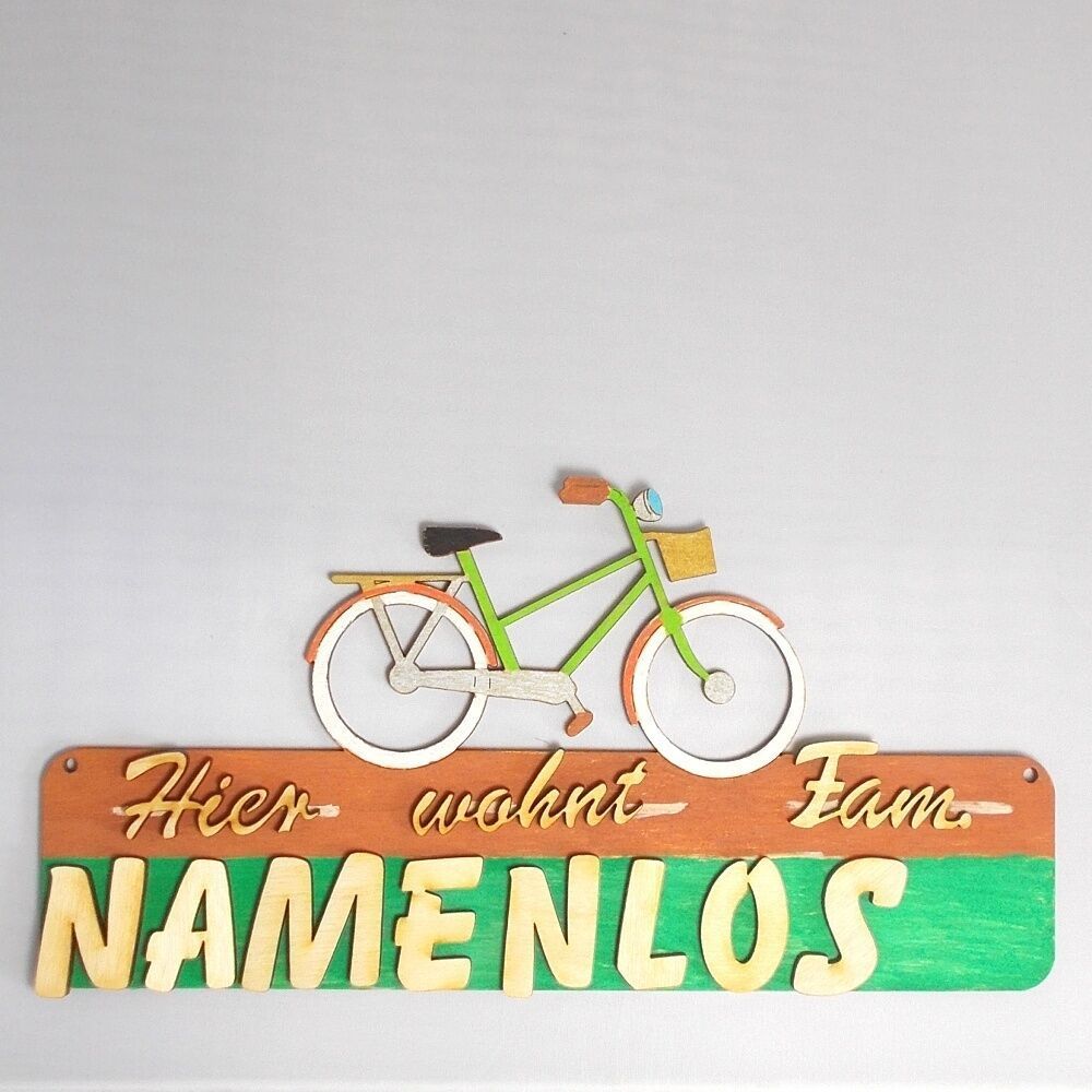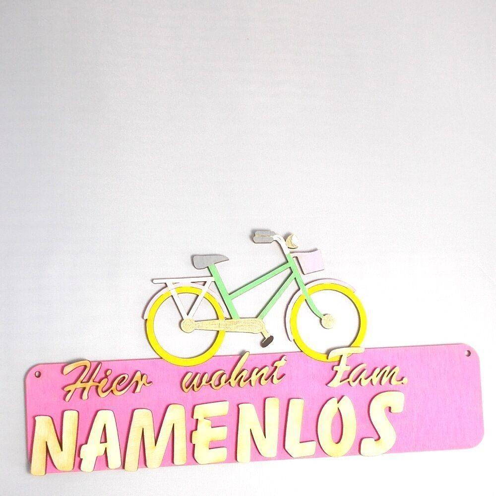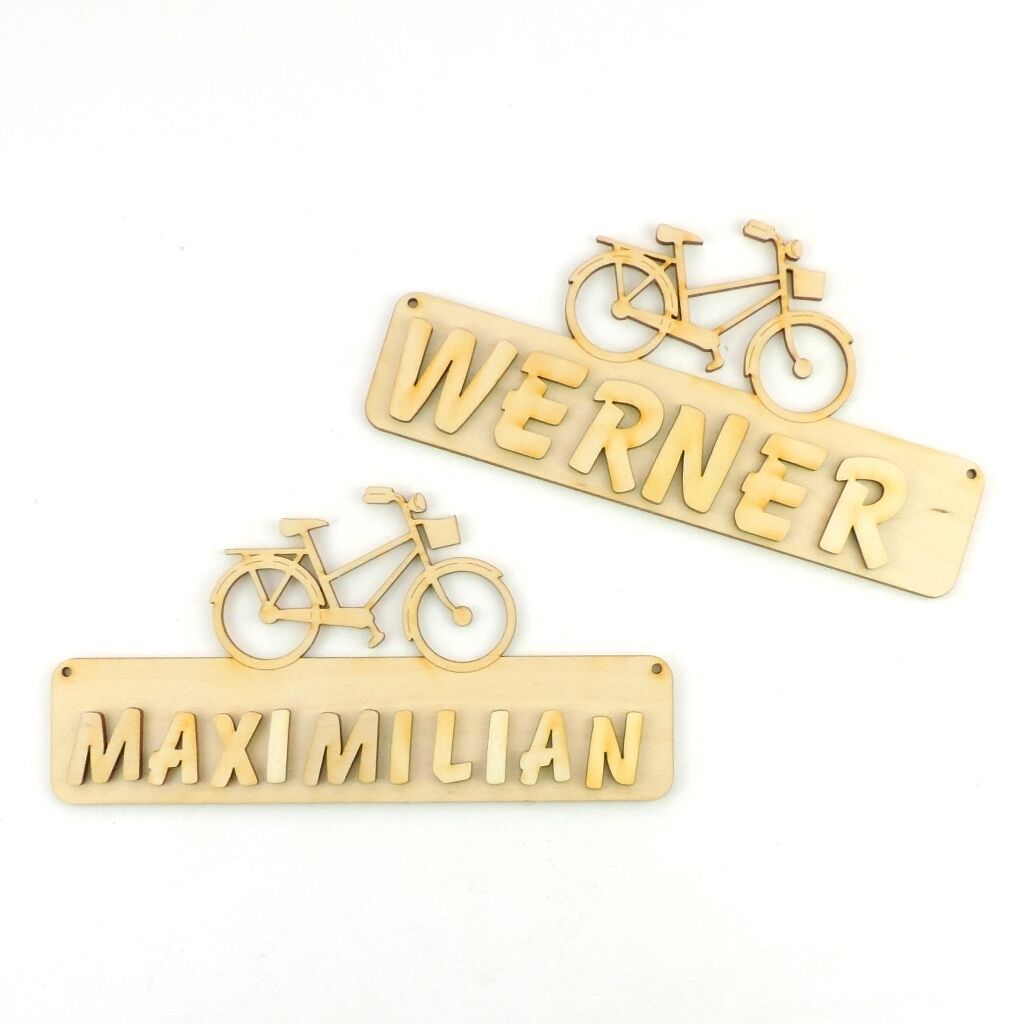 Türschild Kinderzimmer mit Name in farbigen Buchstaben, 18cm Holz, Fahrrad