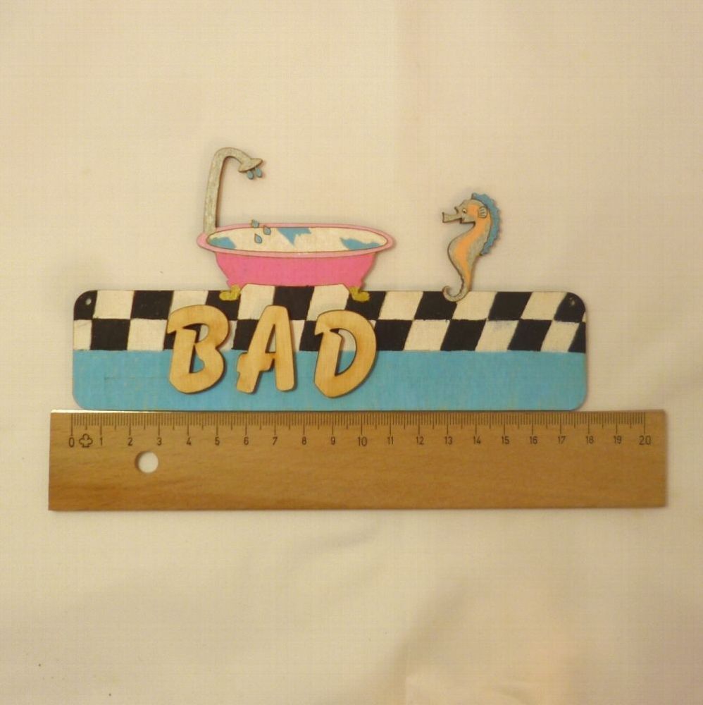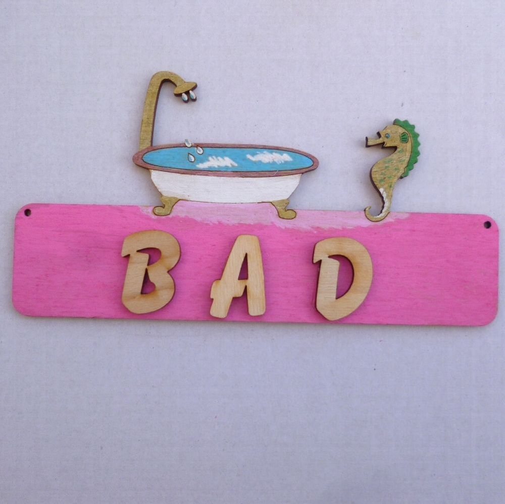 Türschild Seepferd mit Badewanne Das Türschild aus Sperrholz ist 18 cm lang und 3 mm stark. Optional mit Buchstaben 21 mm in rot, blau, grün oder natur, 30 mm in natur. Damit Sie das Türschild besser gestalten können, erhalten Sie dazu Ihren gewünschten Namen mit losen Buchstaben. Bitte geben Sie na