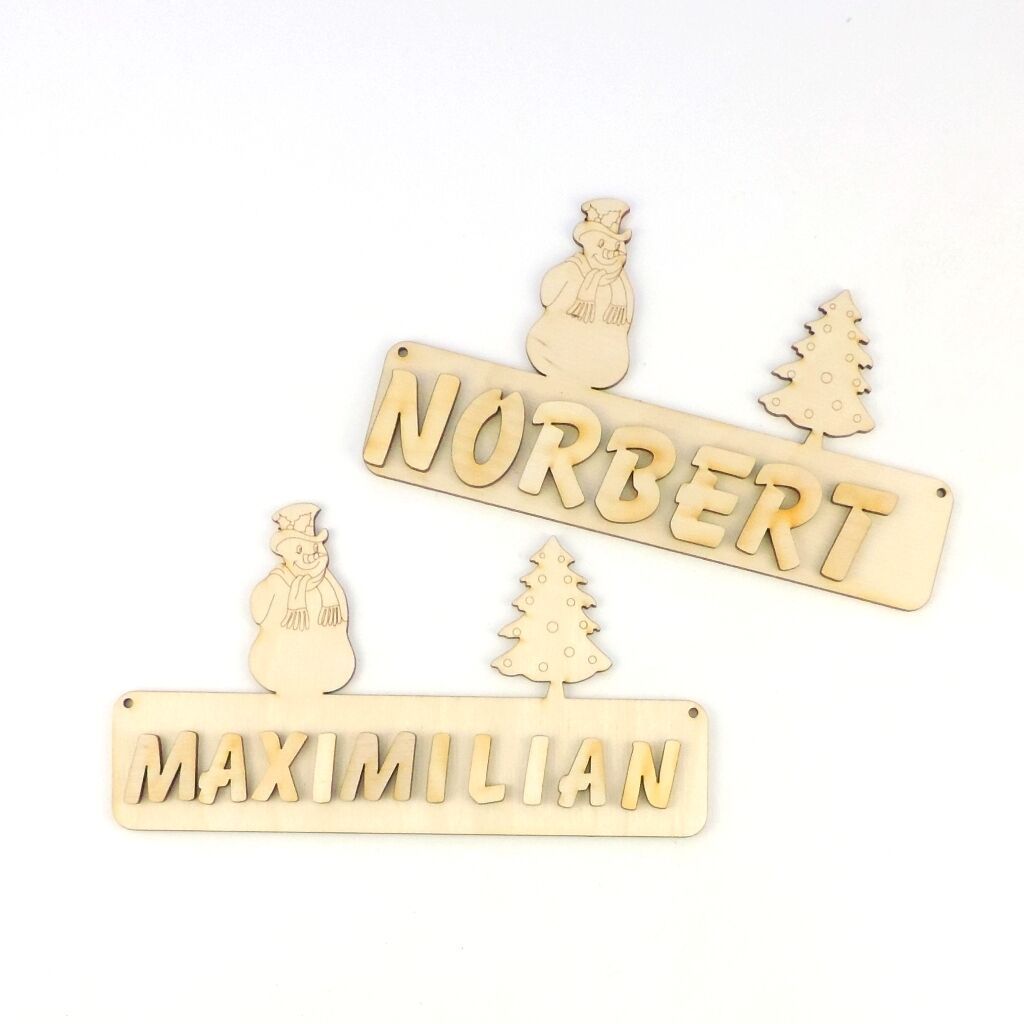 Türschild Kinderzimmer mit Namen, bunten Buchstaben, 18cm Holz, Schneemann