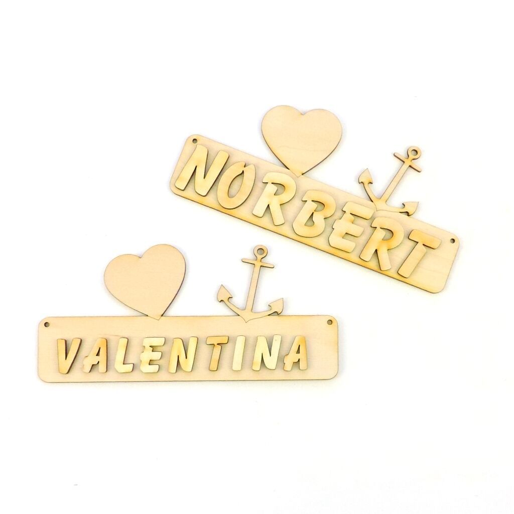 Türschild Kinderzimmer personalisiert, Buchstaben 18cm Holz Herz und Anker