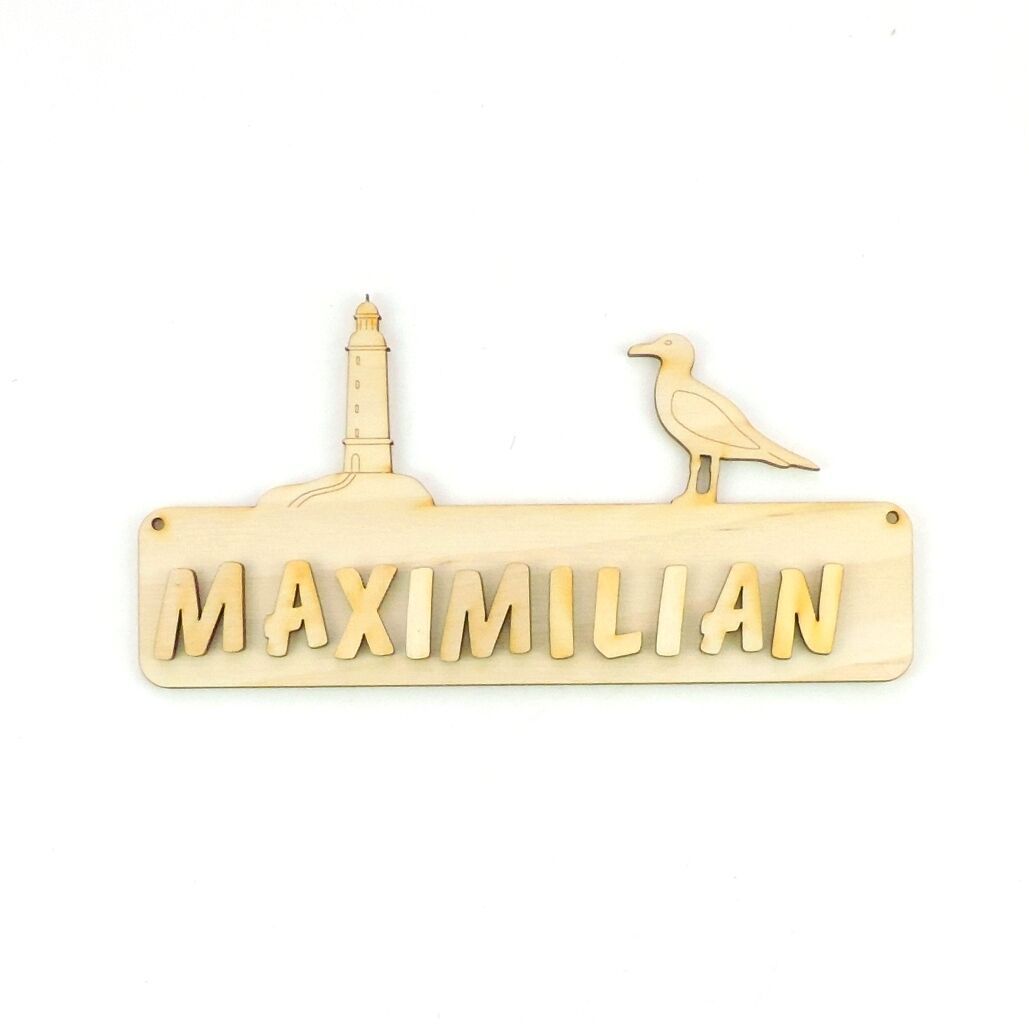 Türschild Leuchtturm und Möwe Das Türschild aus Sperrholz ist 18 cm lang und 3 mm stark. Optional mit Buchstaben 21 mm in Natur, 30 mm in Natur. Damit Sie das Türschild besser gestalten können, erhalten Sie dazu Ihren gewünschten Namen mit losen Buchstaben. Bitte geben Sie nach dem Kauf an, welcher