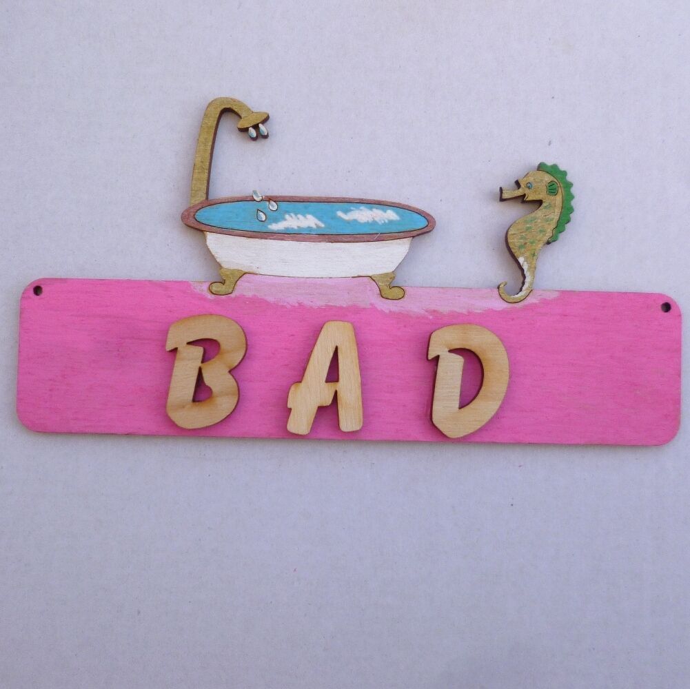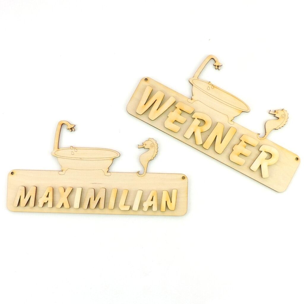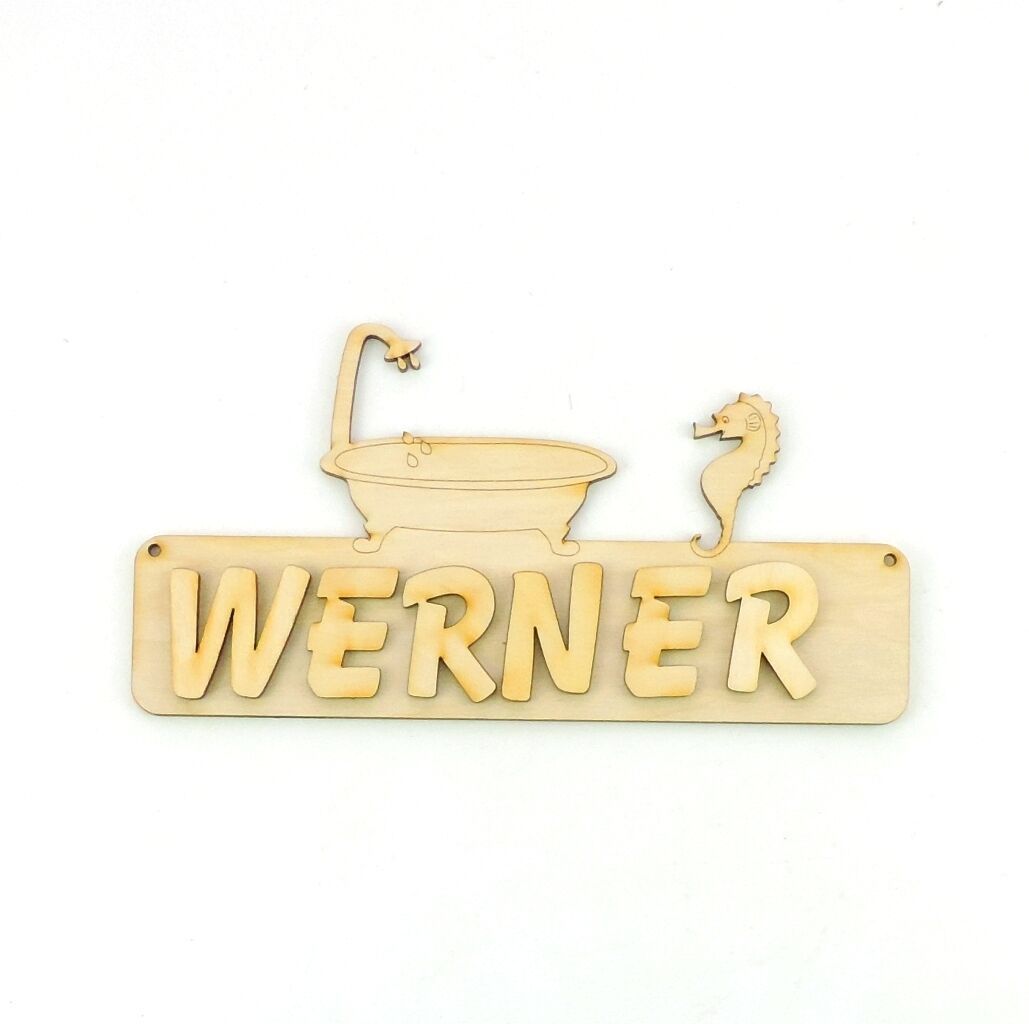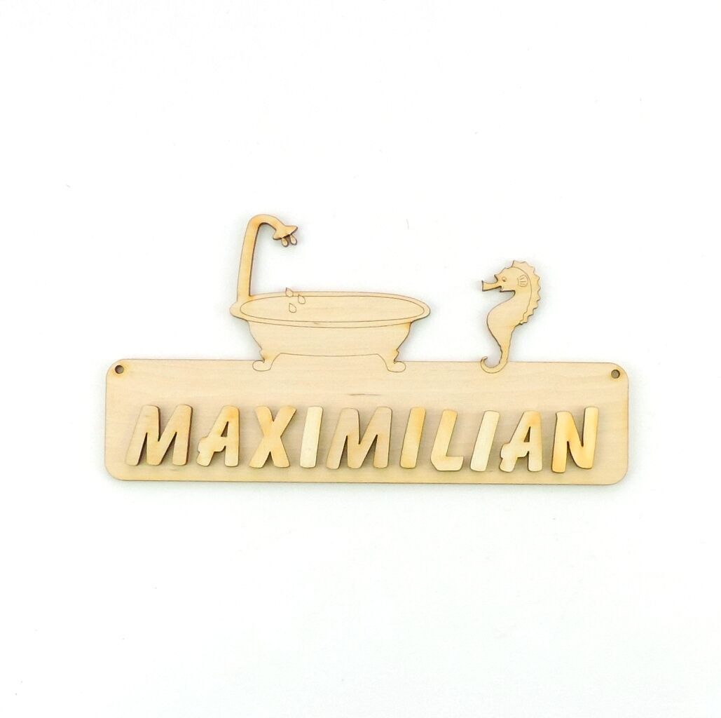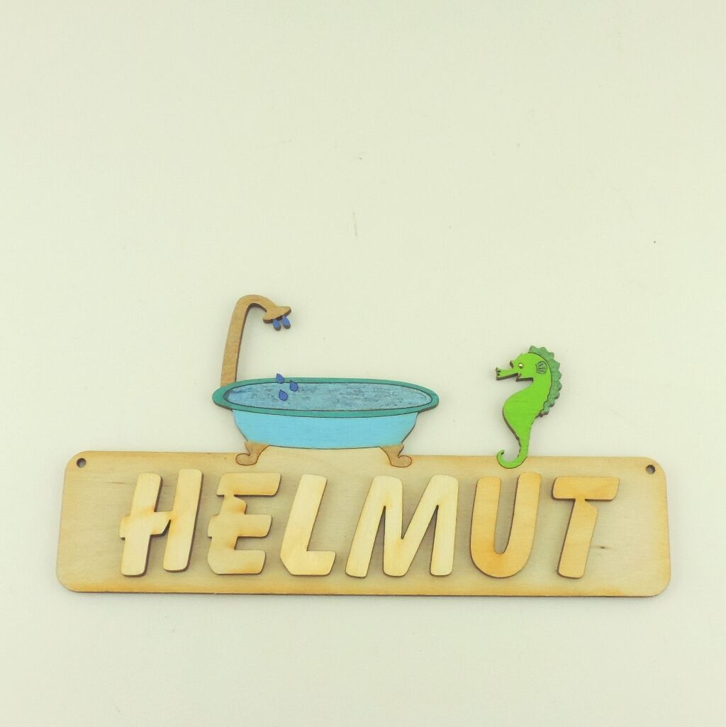 Türschild Kinderzimmer WC Schild, Buchstaben, 18cm Holz, Badewanne und Seepferd
