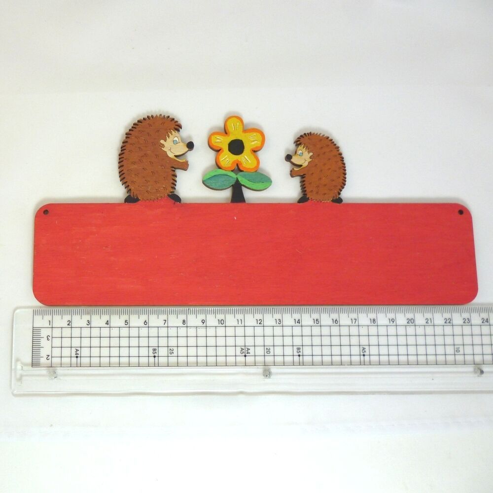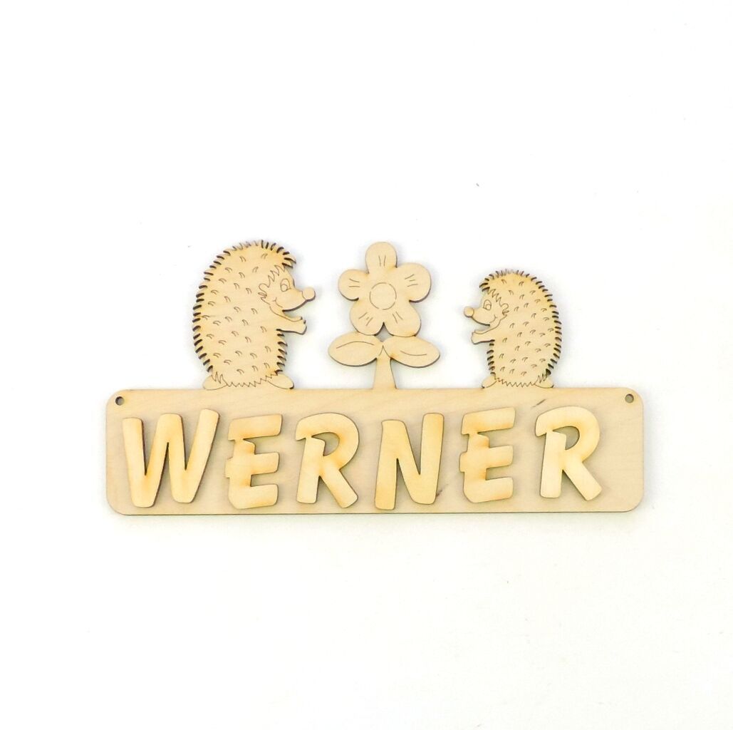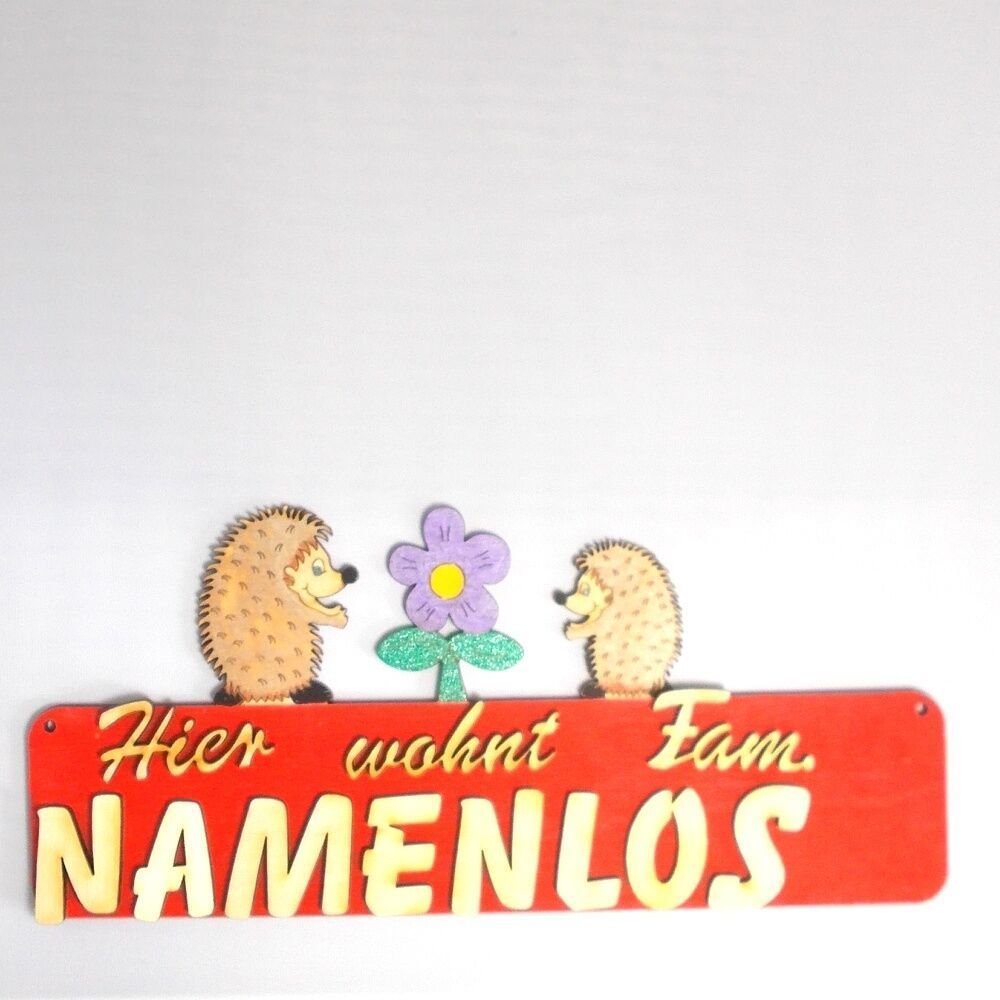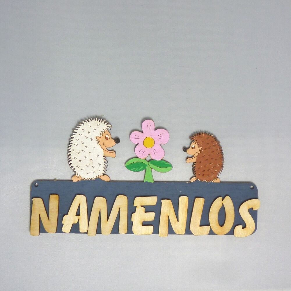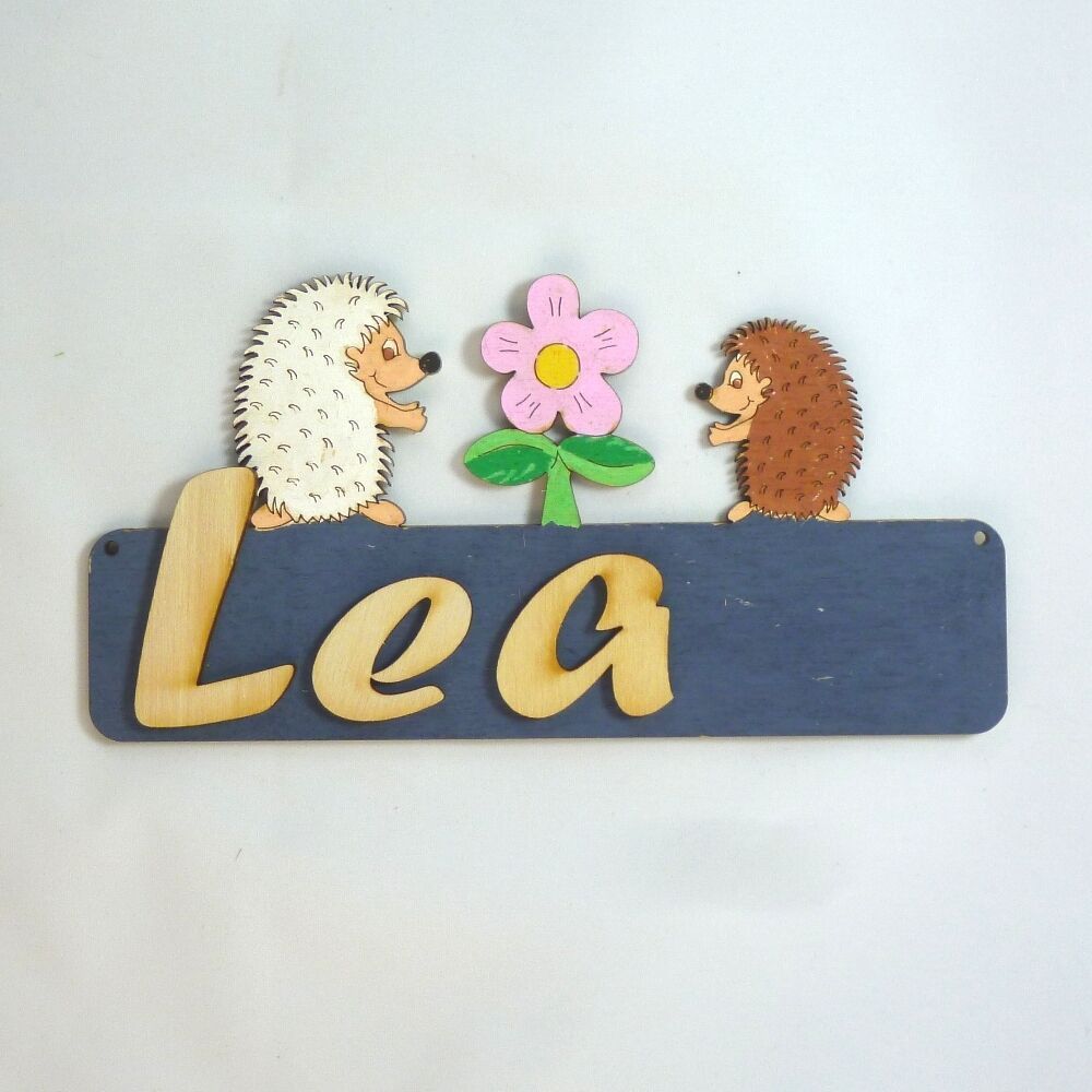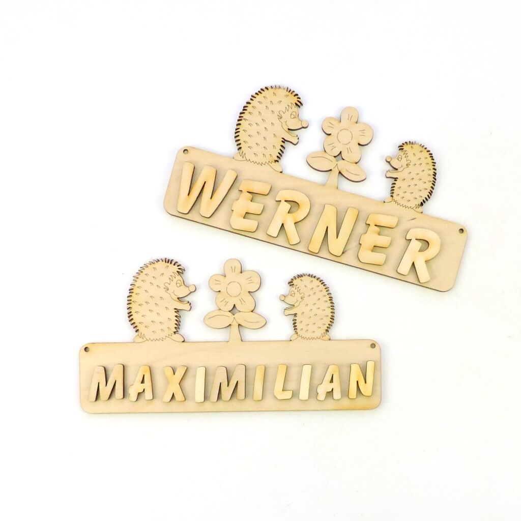 Türschild 2 Igel und Blume Das Türschild aus Sperrholz ist 18 cm lang und 3 mm stark. Optional mit Buchstaben 21 mm in Natur, 30 mm in Natur. Damit Sie das Türschild besser gestalten können, erhalten Sie dazu Ihren gewünschten Namen mit losen Buchstaben. Bitte geben Sie nach dem Kauf an, welcher Nam