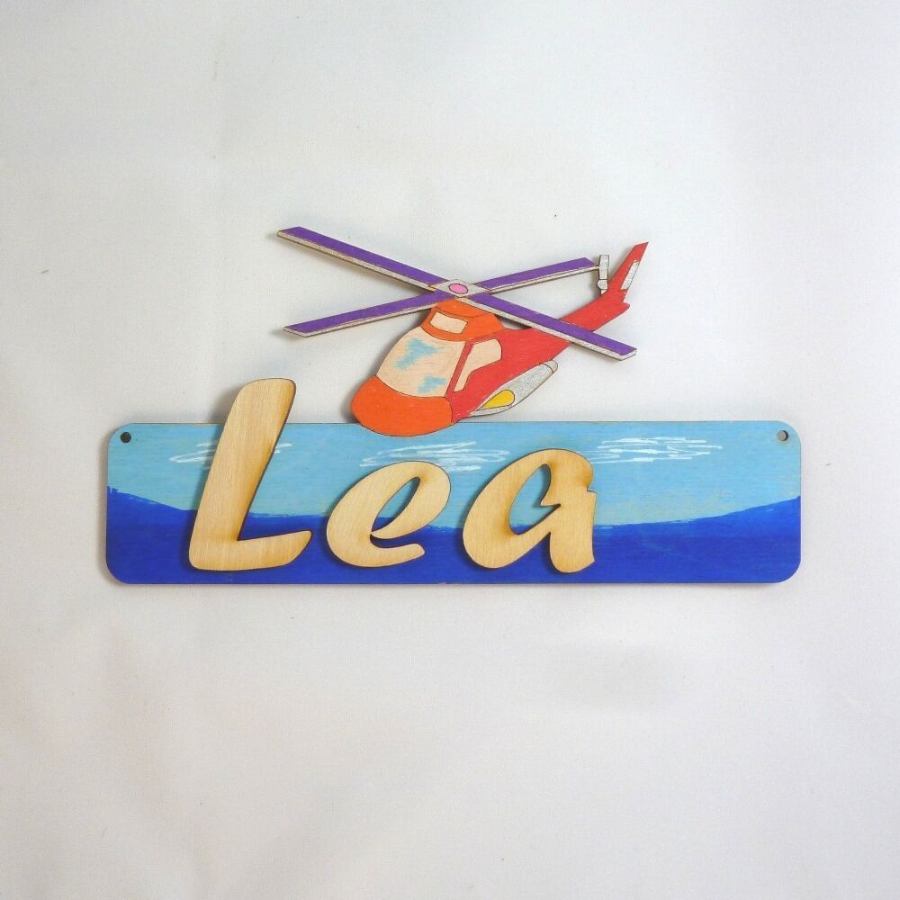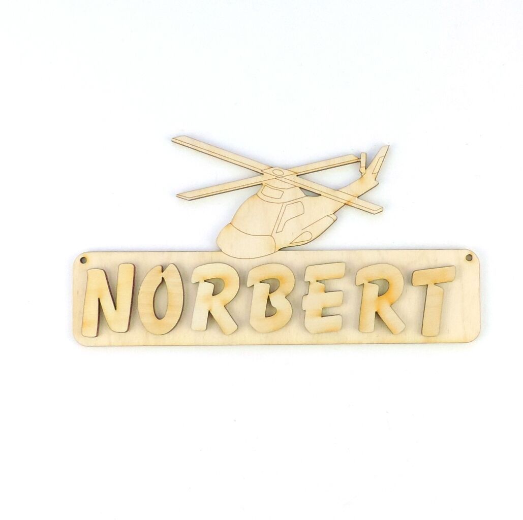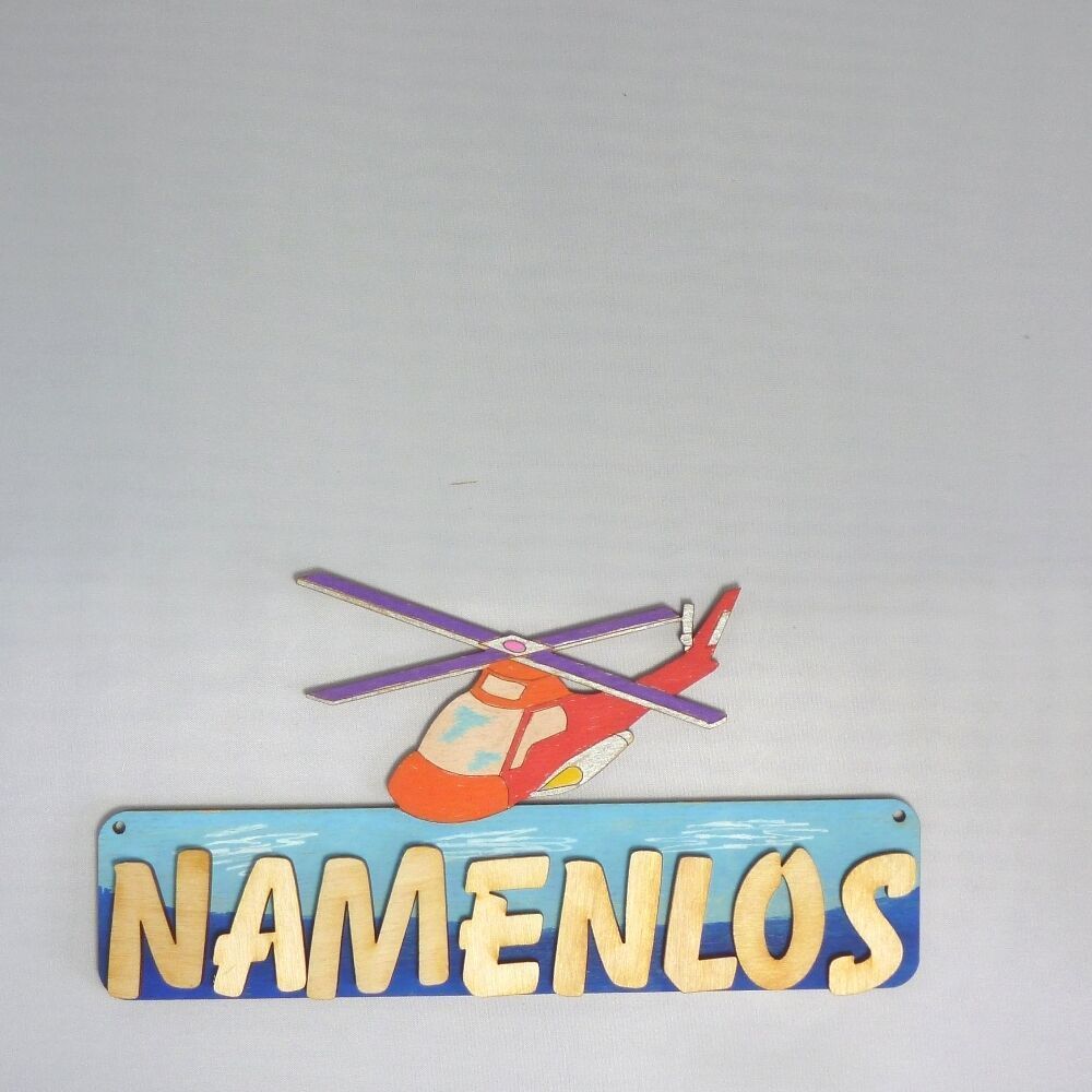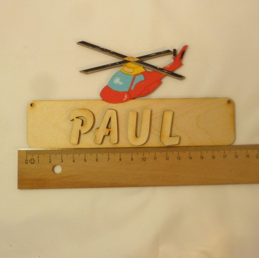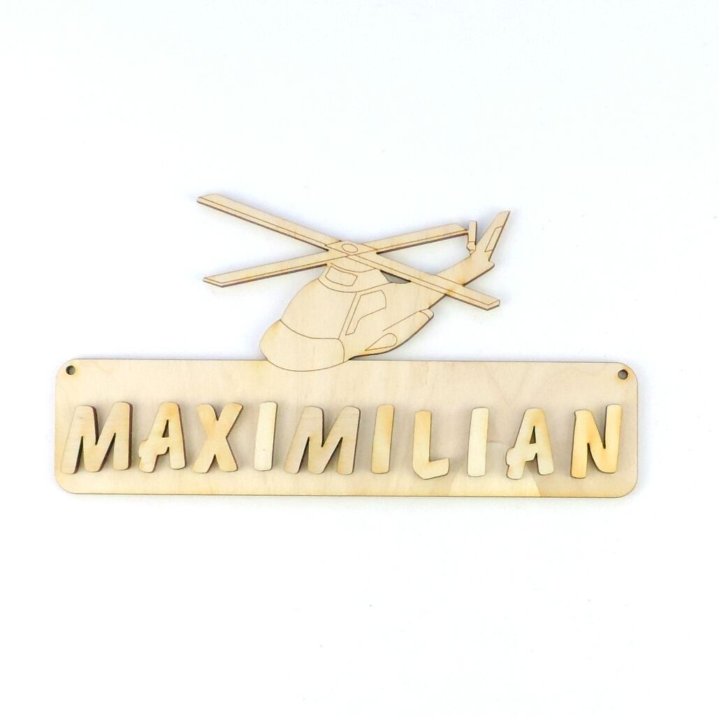 Türschild Namensschild Kinderzimmer , Buchstaben, 18cm Holz Hubschrauber