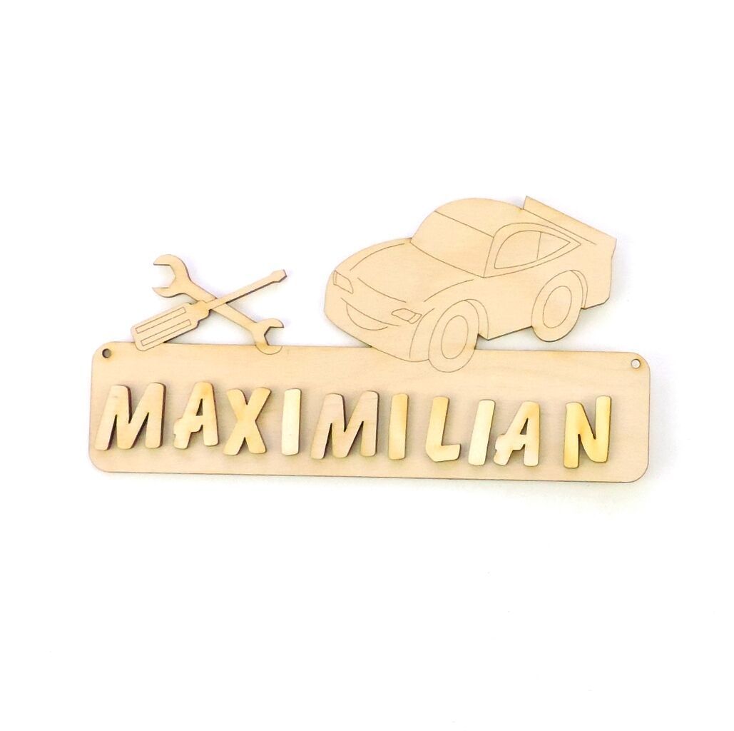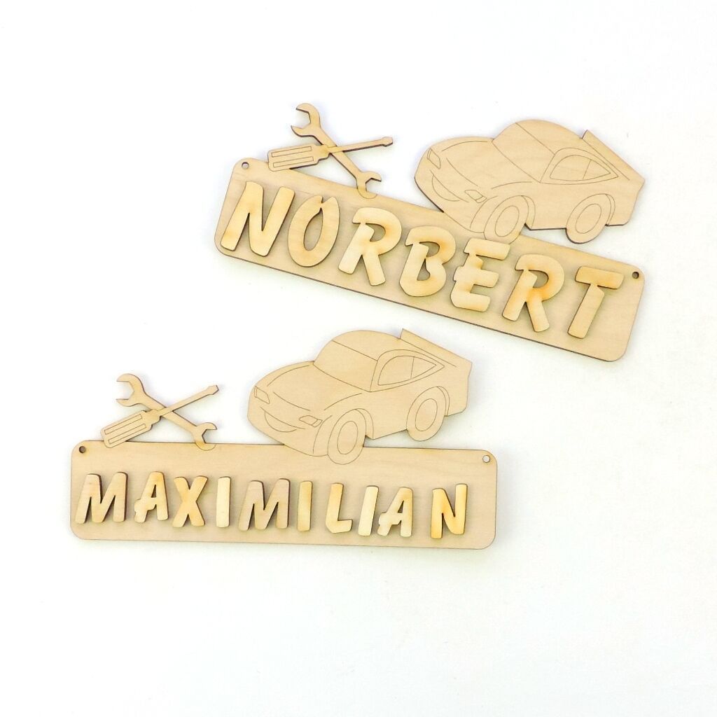 Türschild Werkzeug und Auto Das Türschild aus Sperrholz ist 18 cm lang und 3 mm stark. Optional mit Buchstaben 21 mm in Natur, 30 mm in Natur. Damit Sie das Türschild besser gestalten können, erhalten Sie dazu Ihren gewünschten Namen mit losen Buchstaben. Bitte geben Sie nach dem Kauf an, welcher Na