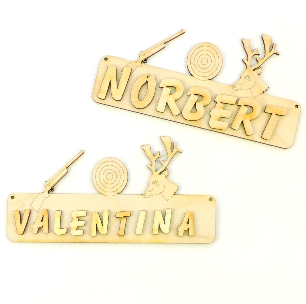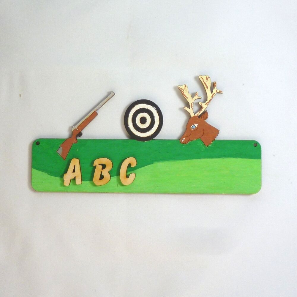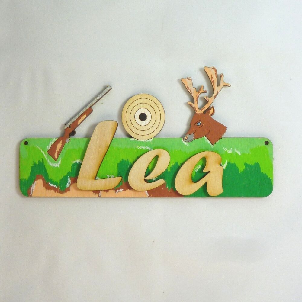 Türschild Jagdmotiv Das Türschild aus Sperrholz ist 18 cm lang und 3 mm stark. Optional mit Buchstaben 21 mm in Natur, 30 mm in Natur. Damit Sie das Türschild besser gestalten können, erhalten Sie dazu Ihren gewünschten Namen mit losen Buchstaben. Bitte geben Sie nach dem Kauf an, welcher Name mitge