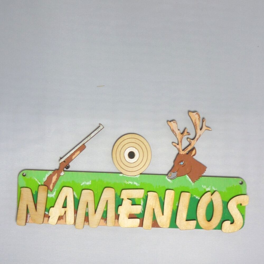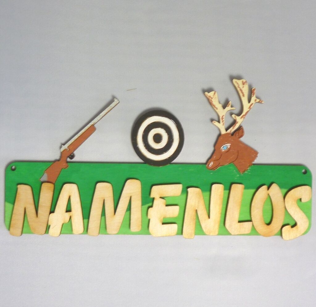 Türschild Willkommensschild Wunschtext, Buchstaben 18cm Holz Jagdmotiv, Gewehr