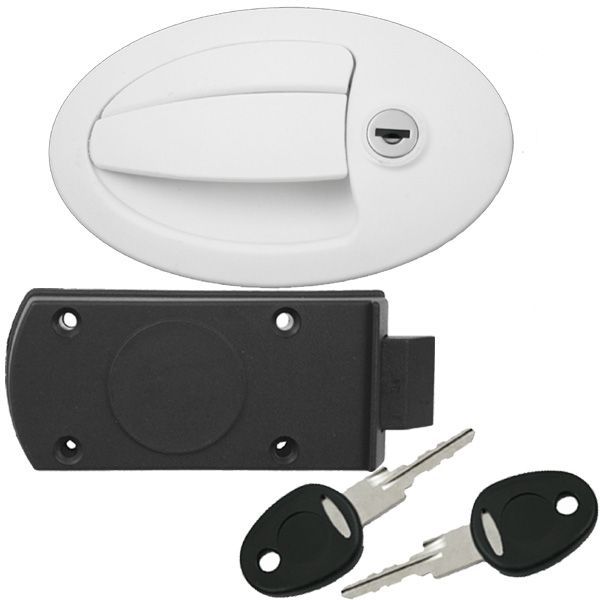 Türschloss Schloss Stauklappenschloss Wohnwagen Wohnmobil Caravan FF-System weiß oval