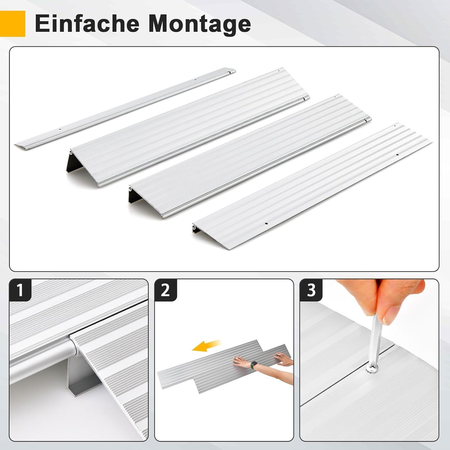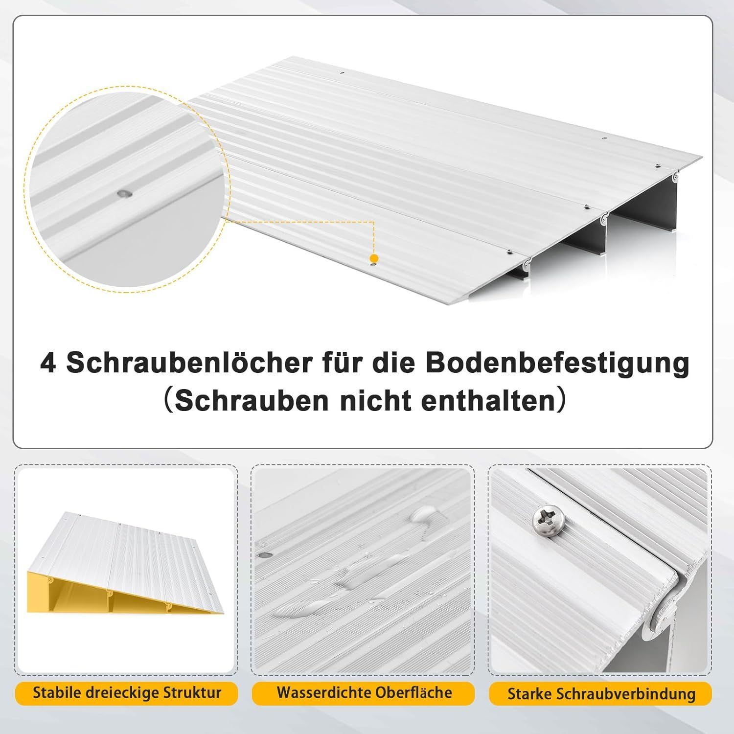 Türschwellenrampe, Rollstuhlrampe Aluminium mit verstellbarem Rampendesign, Silber