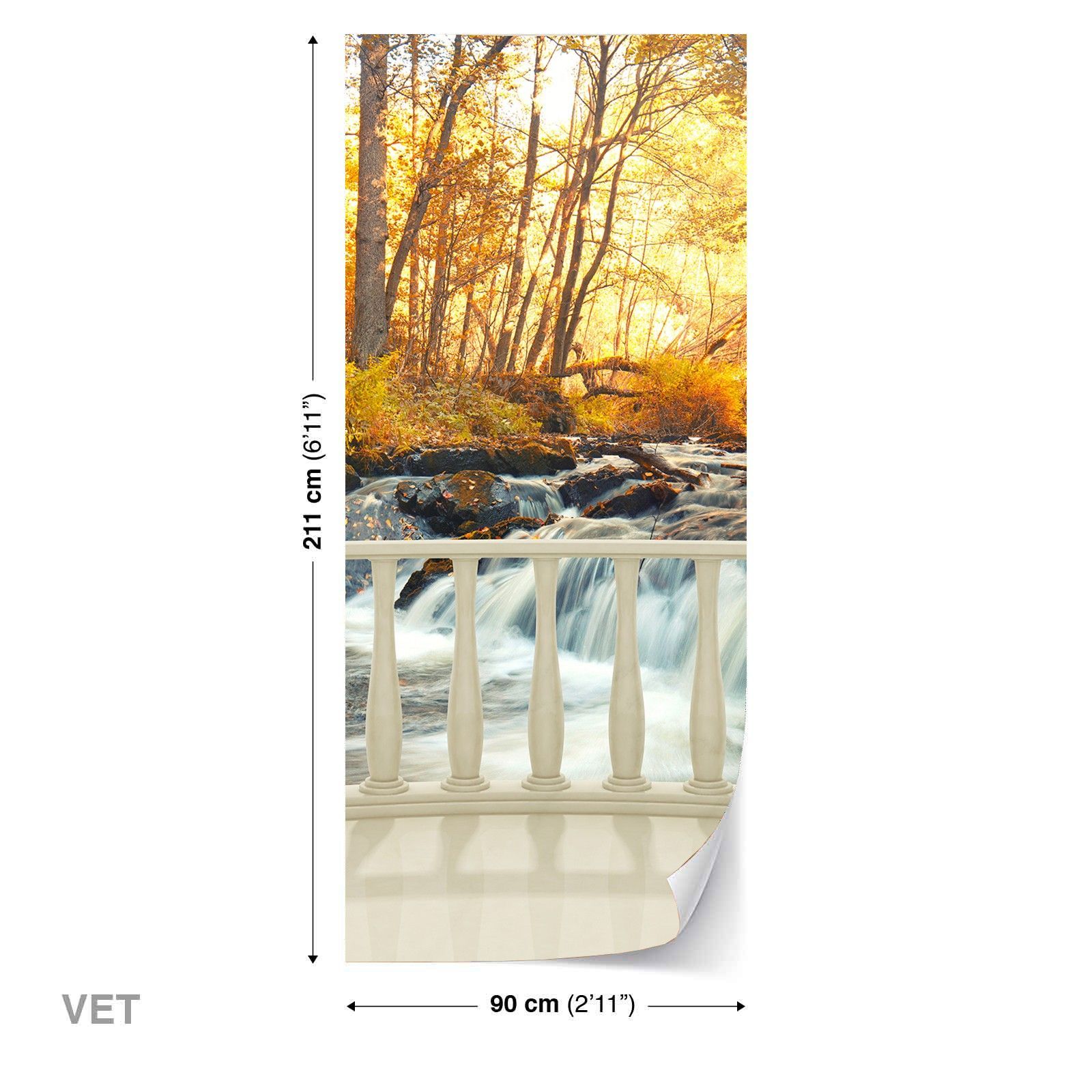 Türtapeten Selbstklebende Wandbild Tür Poster 3D Balkon Fallen Waldbach 1357