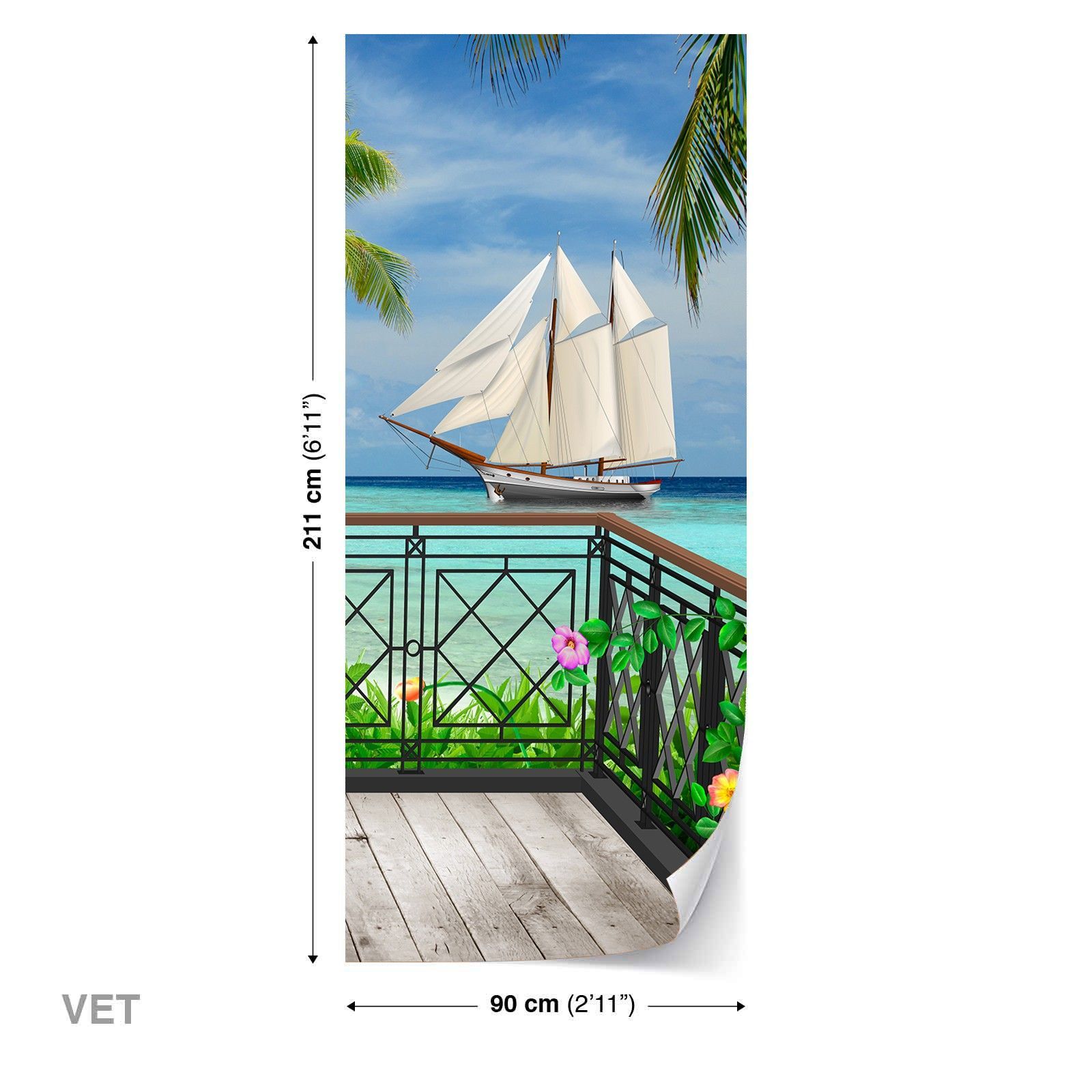 Türtapeten Selbstklebende Wandbild Tür Poster 3D Balkon Meerblick Modern 1376