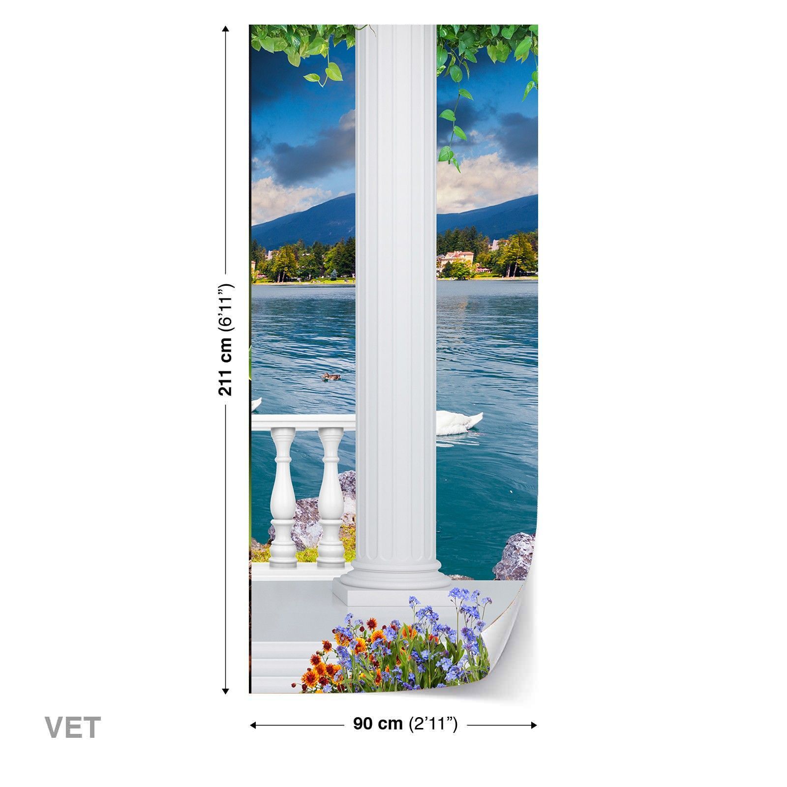 Türtapeten Selbstklebende Wandbild Tür Poster 3D Continental Balkon See 1324