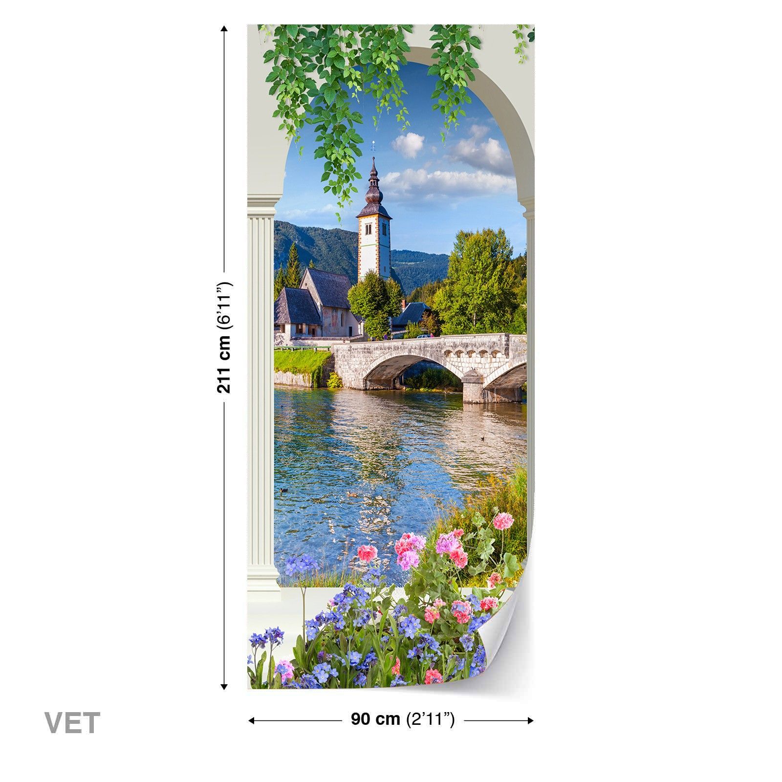 Türtapeten Selbstklebende Wandbild Tür Poster 3D Kolonnade See 1322