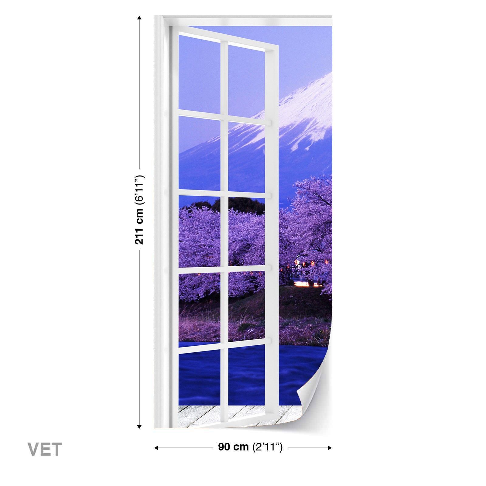 Türtapeten Selbstklebende Wandbild Tür Poster 3D Mont Fuji Kirschblüten 1345