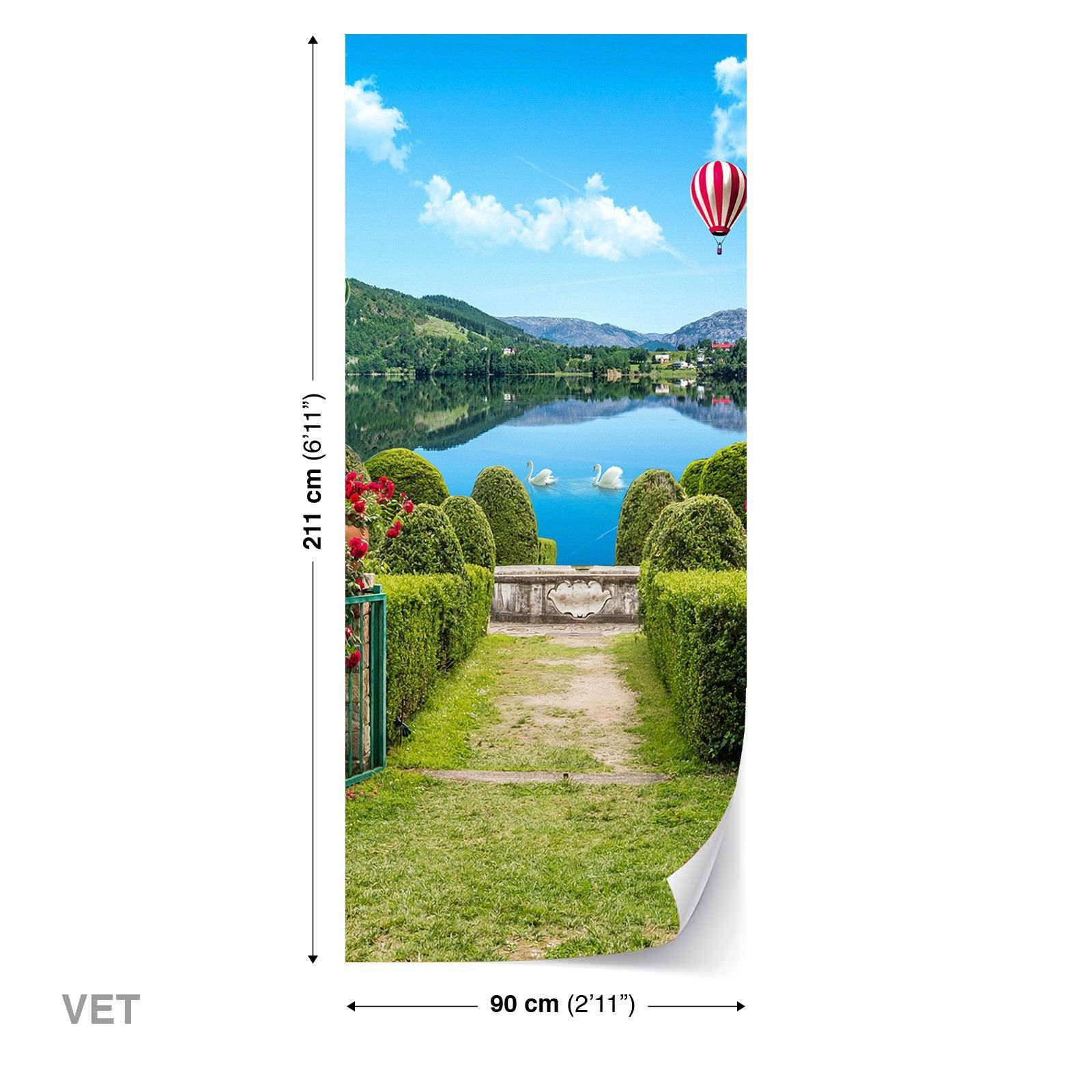 Türtapeten Selbstklebende Wandbild Tür Poster Straßenschattengarten Blume 1446