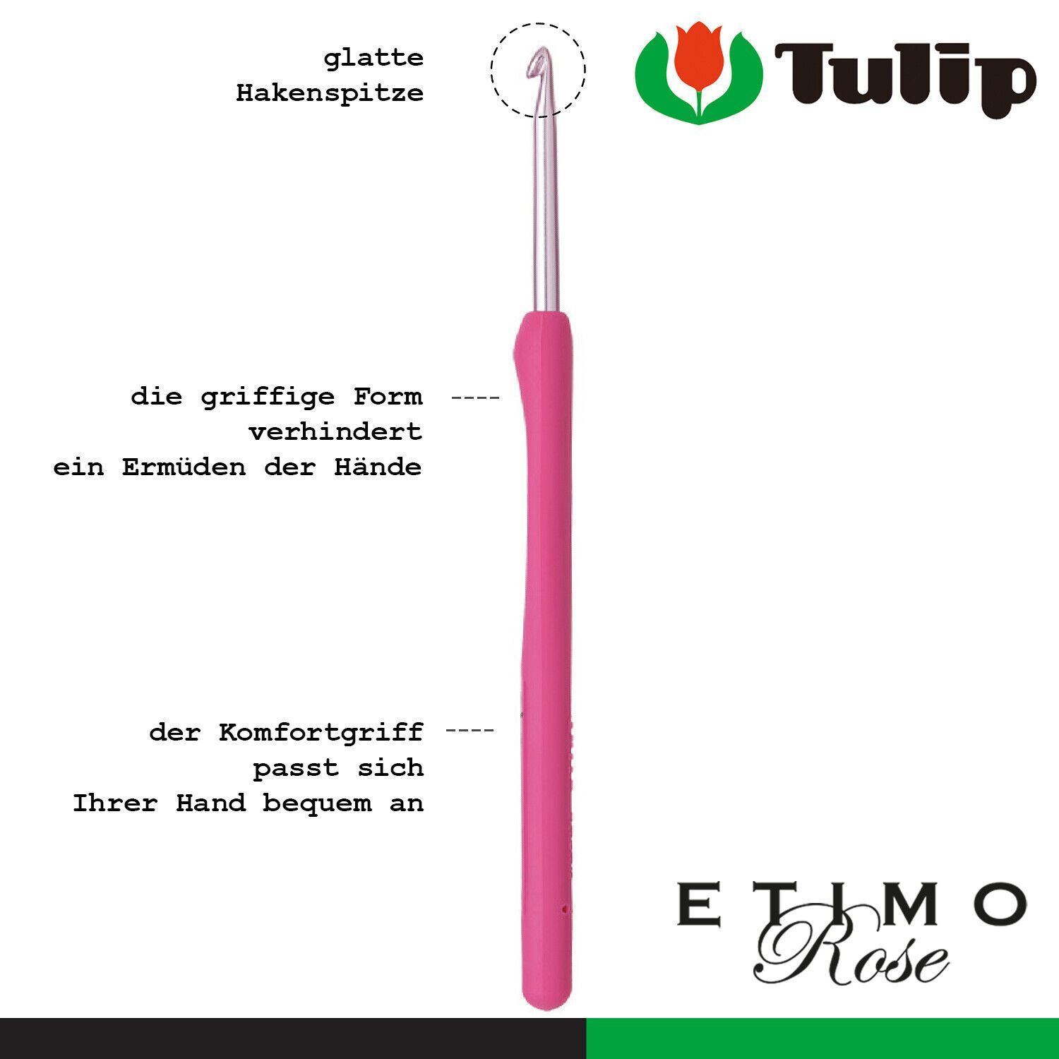 Tulip Etimo Rose Häkelnadel Komfortgriff glatte Hakenspitze griffig 11 Größen